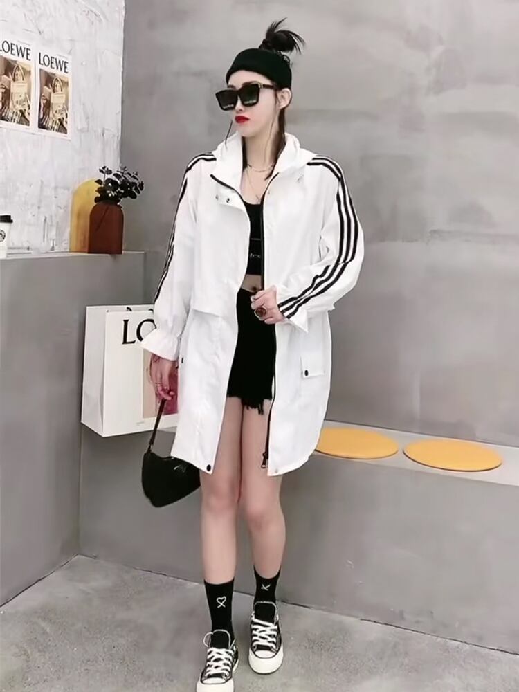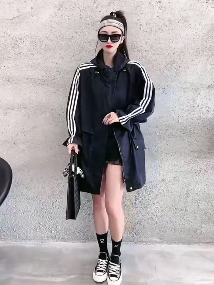 スプリングサマールーズスタイルフードストライプバックジャケット 大きめサイズ 春物 夏物 ステッチ ミックスインファッション80633831470