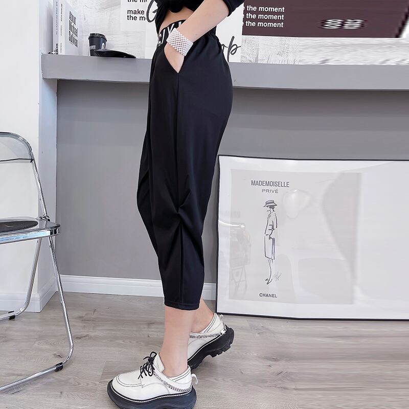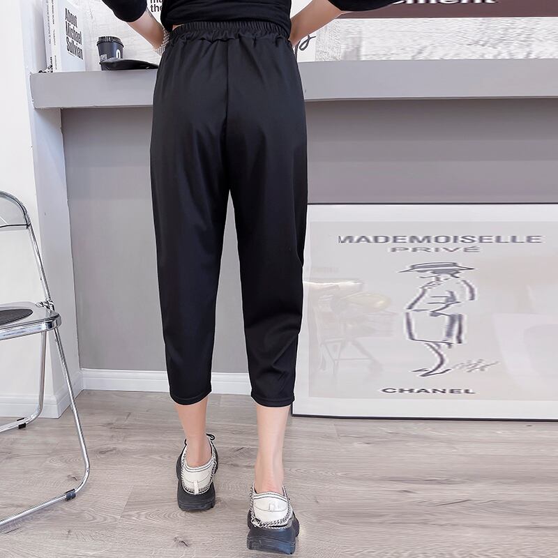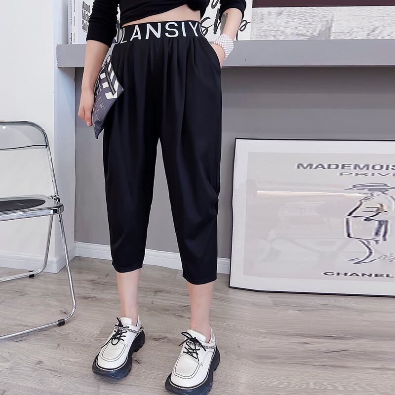 ウェストクロップドパンツ ルーズスプリングサマー薄手 大きめサイズ 春物 夏物 ミックスインファッション36317707929