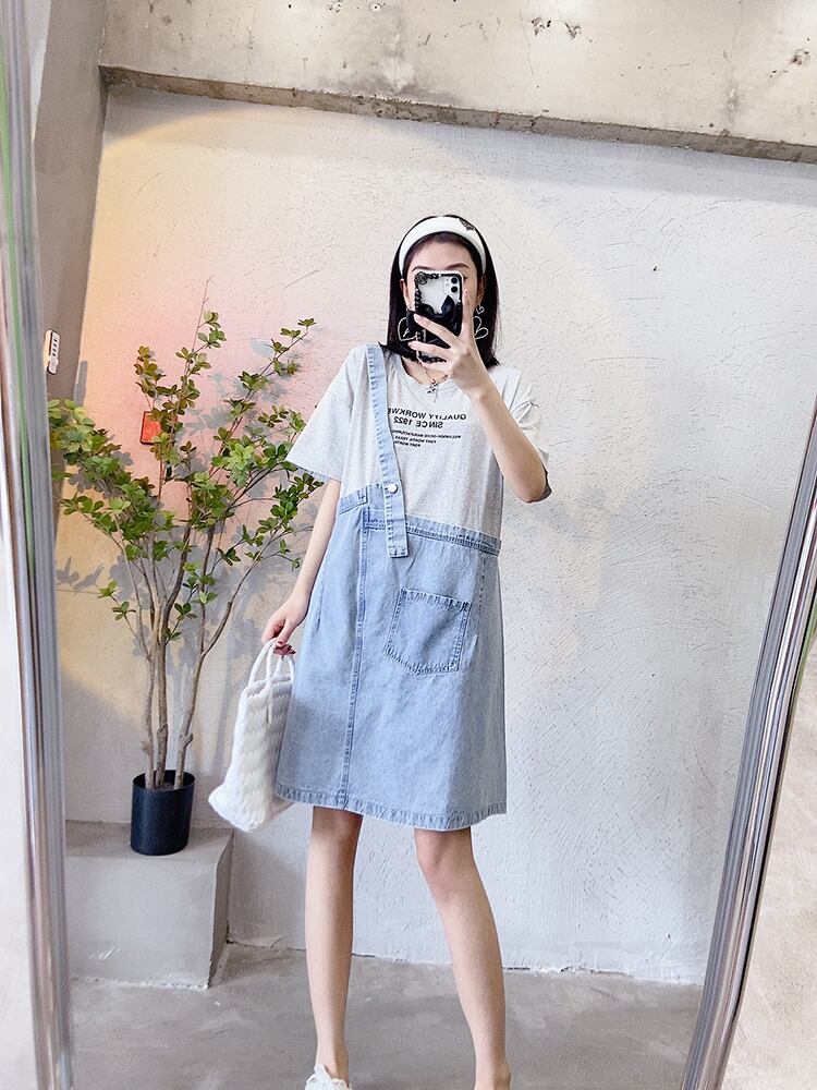 サマールーズカジュアルラウンドネックドレス 大きめサイズ 夏物 Oネック ステッチ ミックスインファッション52598319069