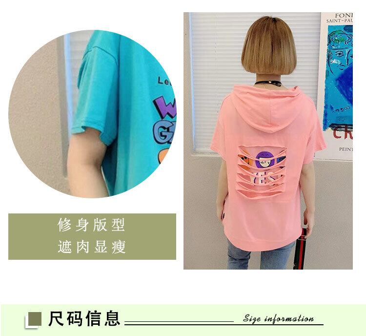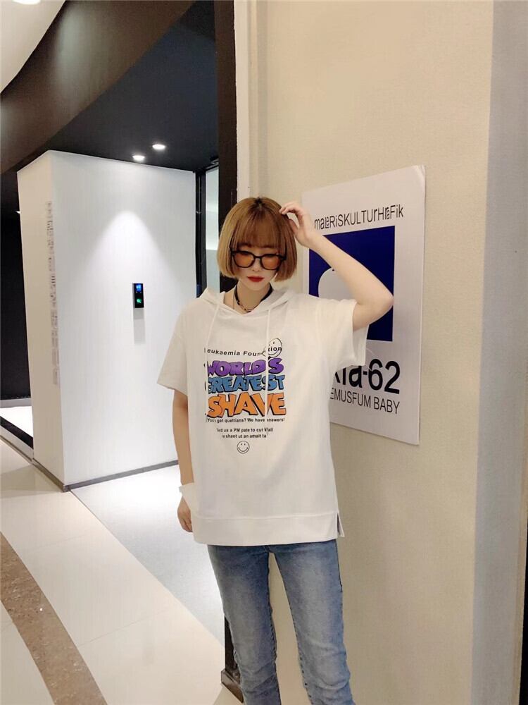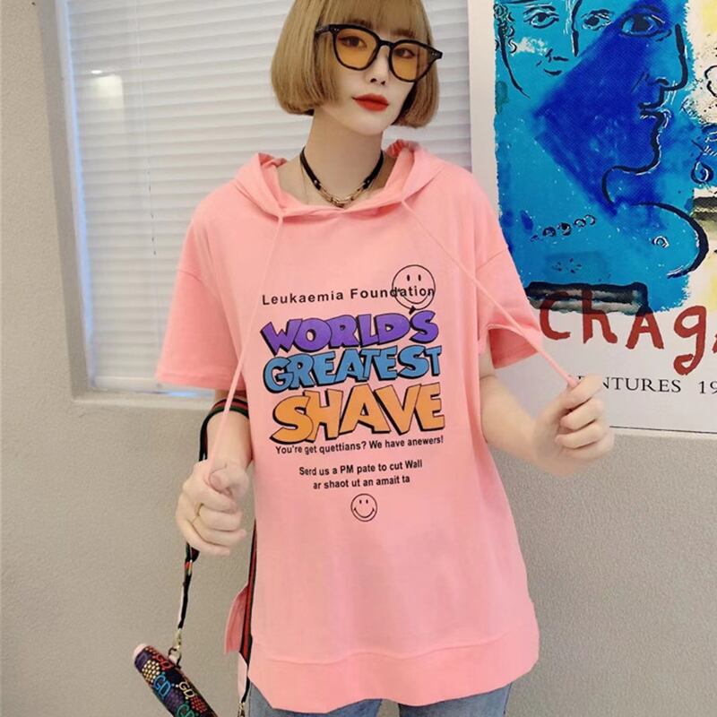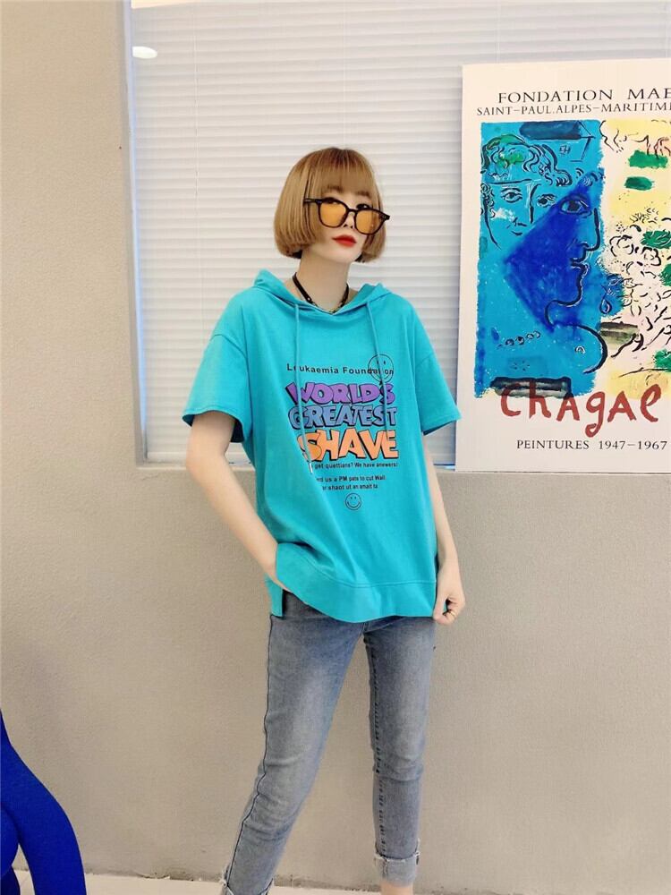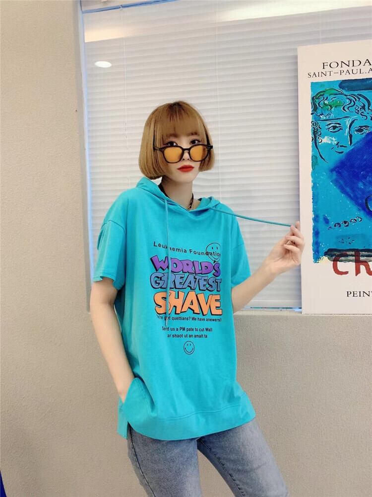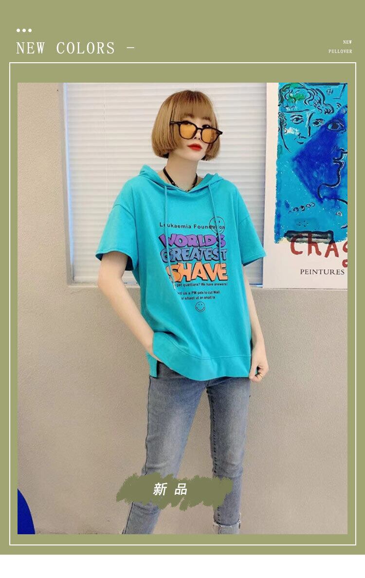 サマープリント柄フードTシャツ シャツ ルーズセーター 大きめサイズ 夏物 ミックスインファッション31068548352