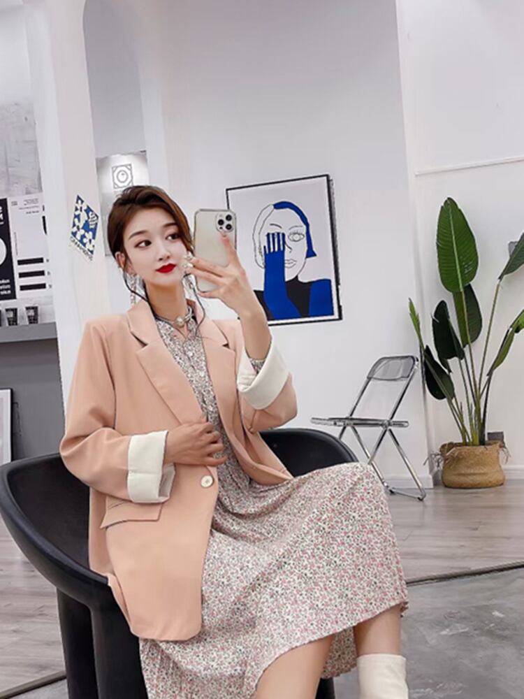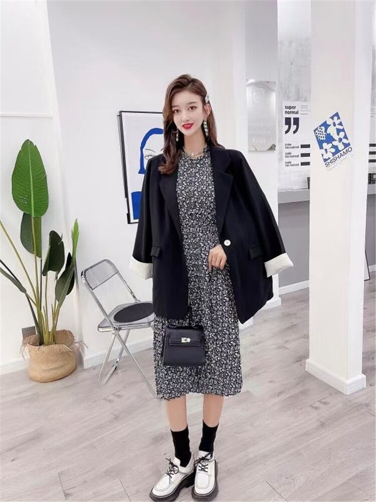ジャケット ウェストフローラルドレス スプリングスカート 大きめサイズ 春物 花柄 ミックスインファッション25715853790