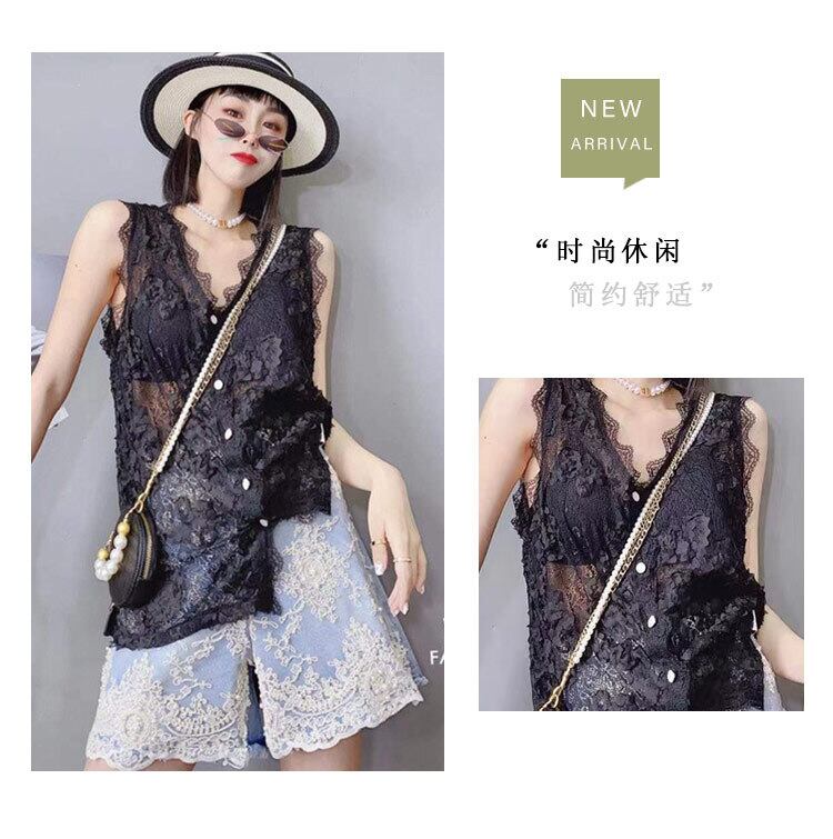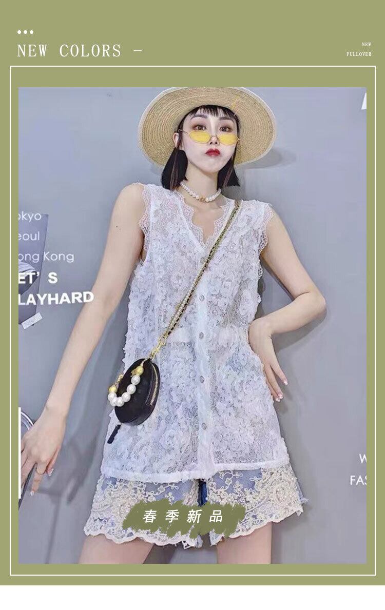 スプリングサマーレースルーズノースリーブTシャツ ショーツ 大きめサイズ 春物 夏物 ブルマー ミックスインファッション97155959850