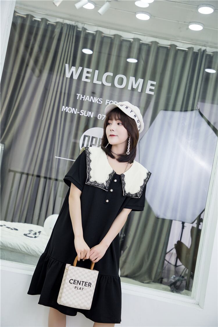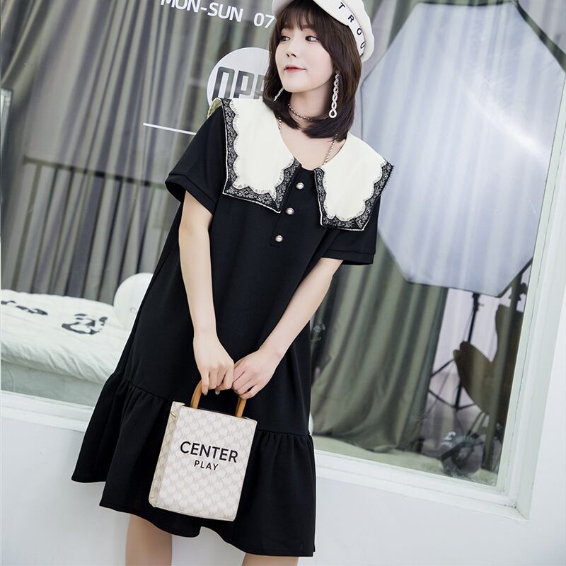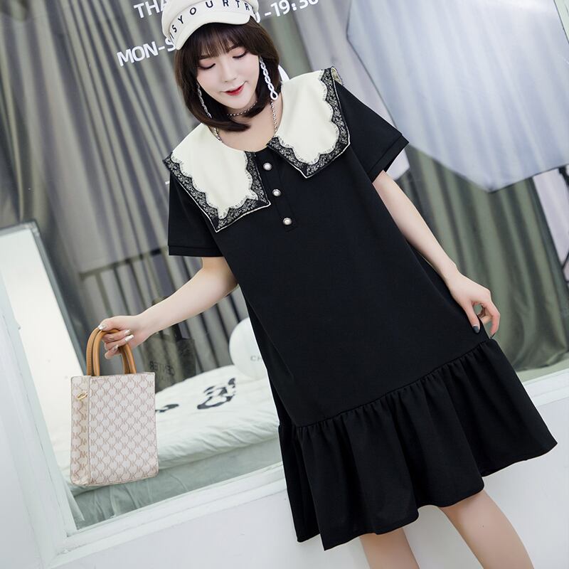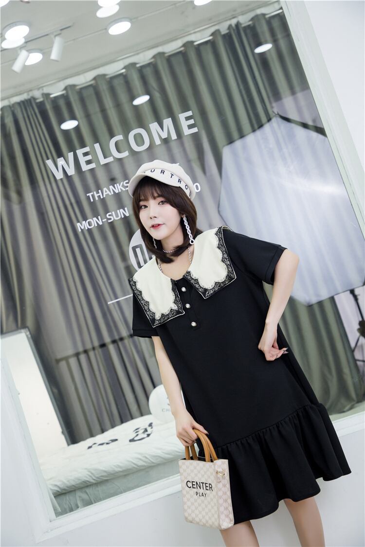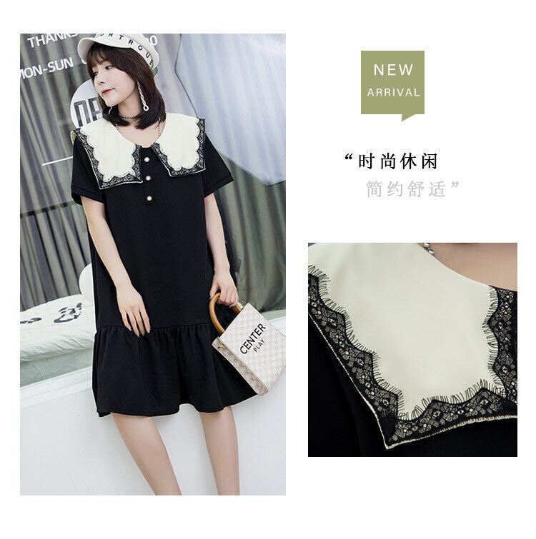 サマーレースネイビーカラールーズドレス 大きめサイズ 夏物 ミックスインファッション84034928399