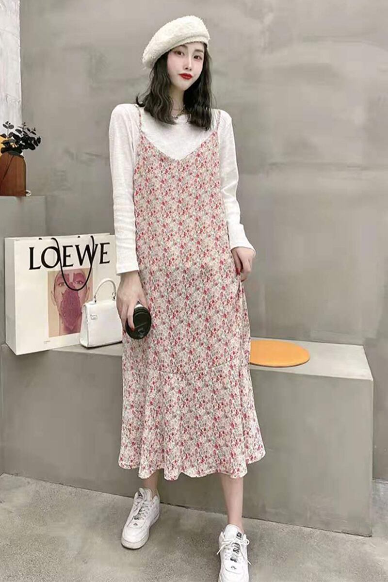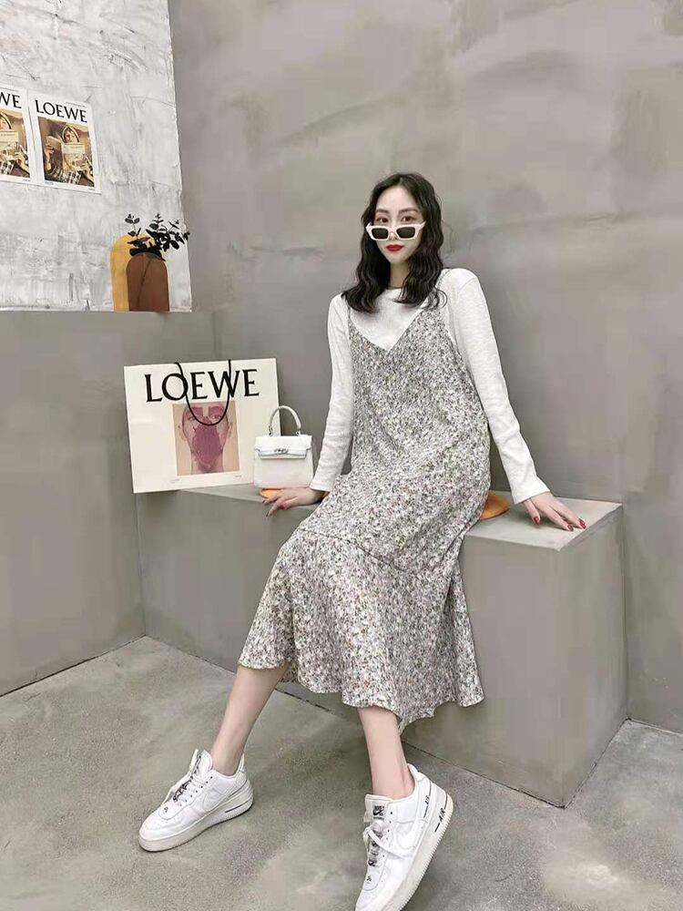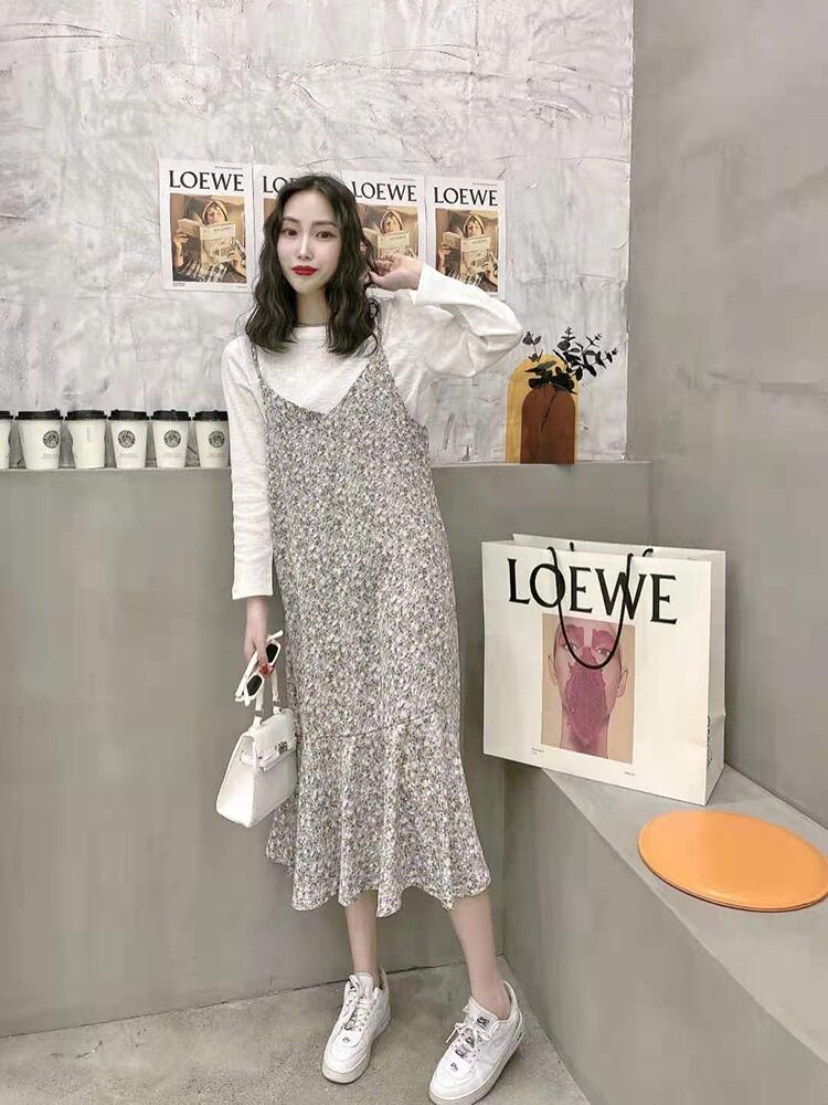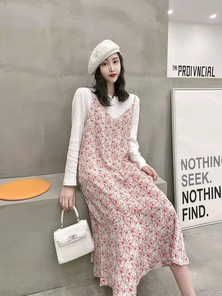 色:白+黒花柄ワンピースツーピーススーツ,ホワイト+グレーフラワースカートツーピーススーツ,白+赤フラワースカートツーピーススーツ