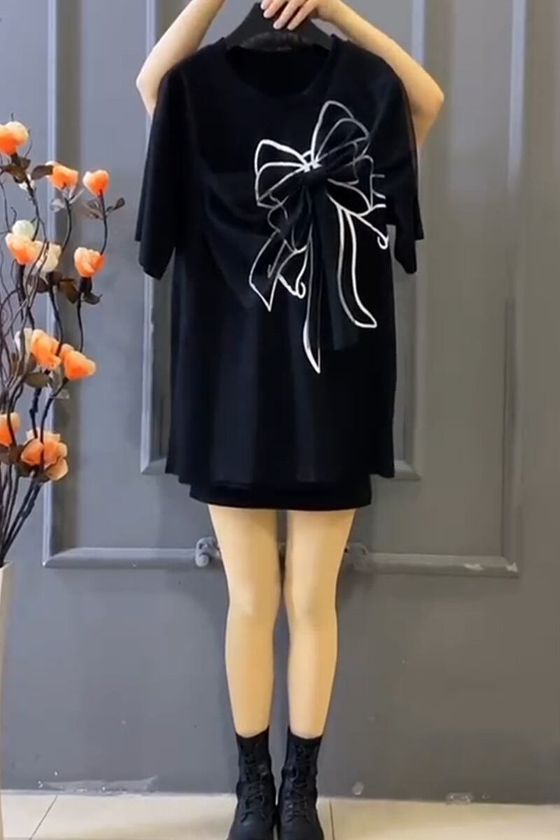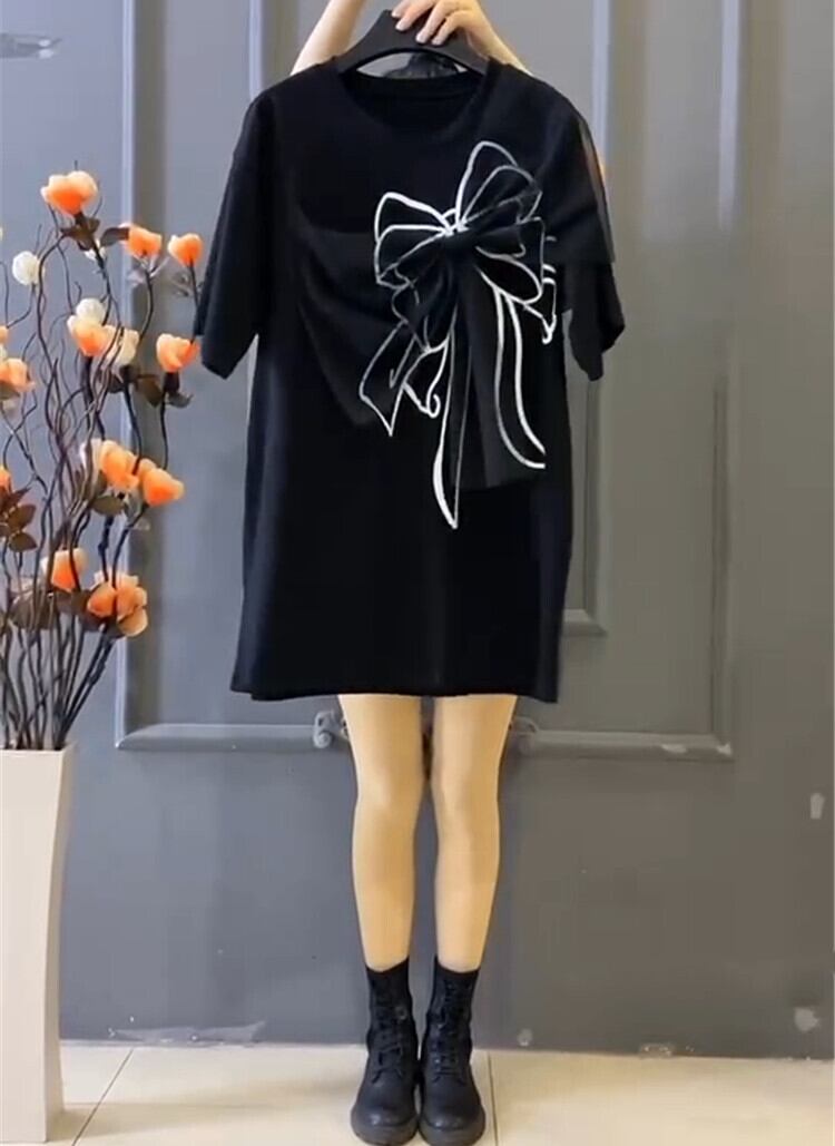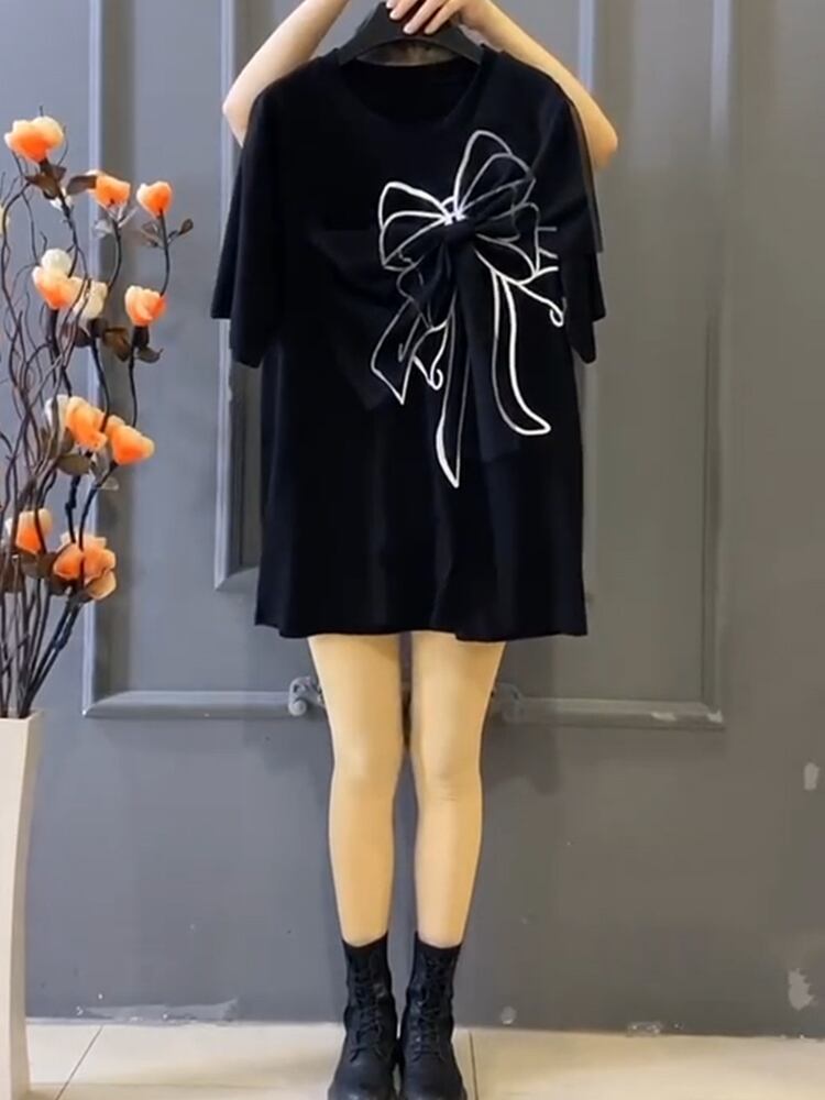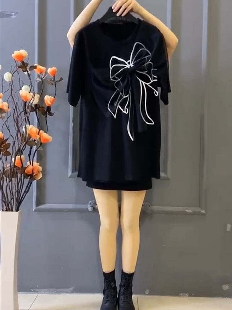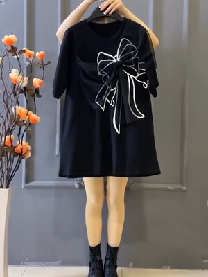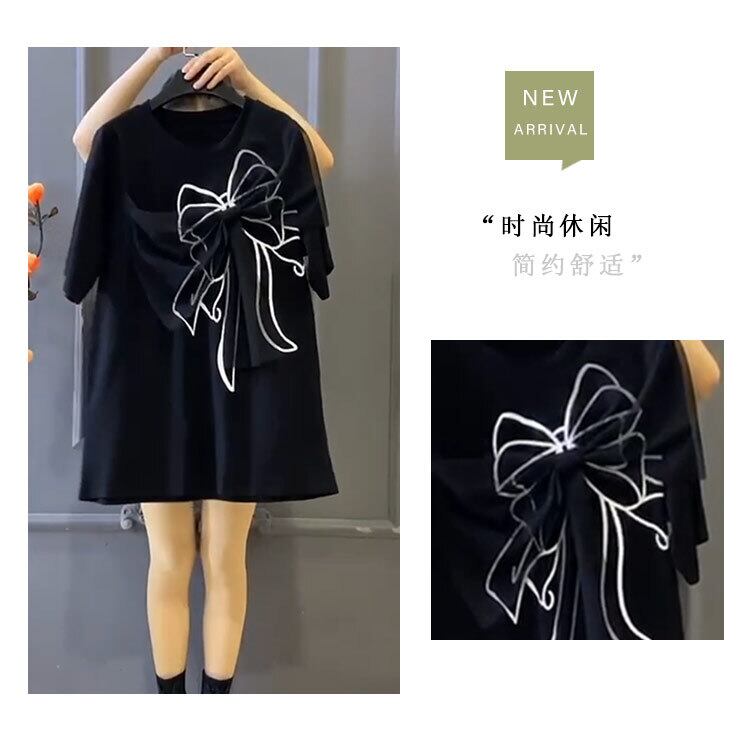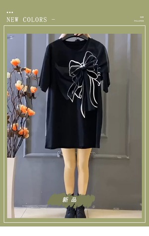 Tシャツ サマースタイル薄手ラウンドネックルーズリボンブラウス 大きめサイズ 夏物 Oネック ミックスインファッション95399769216