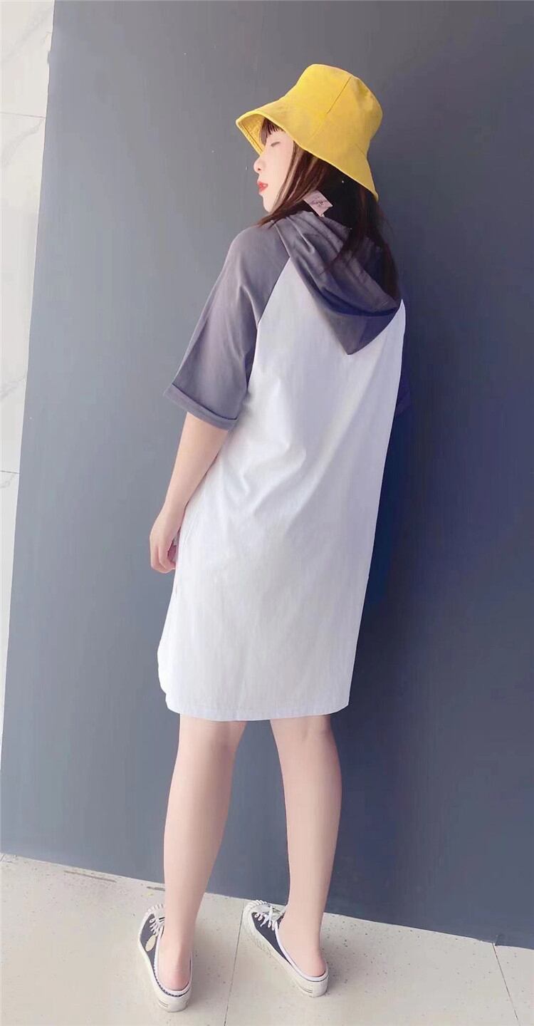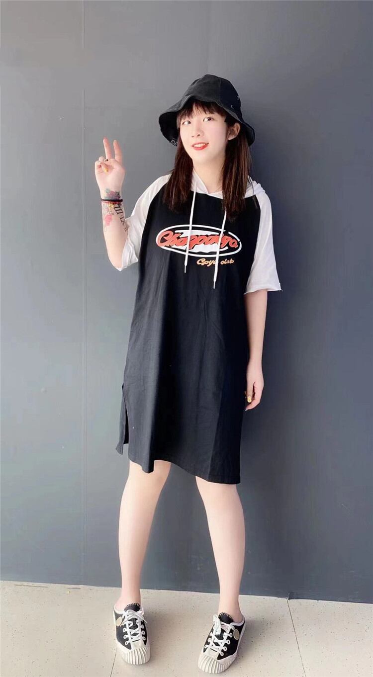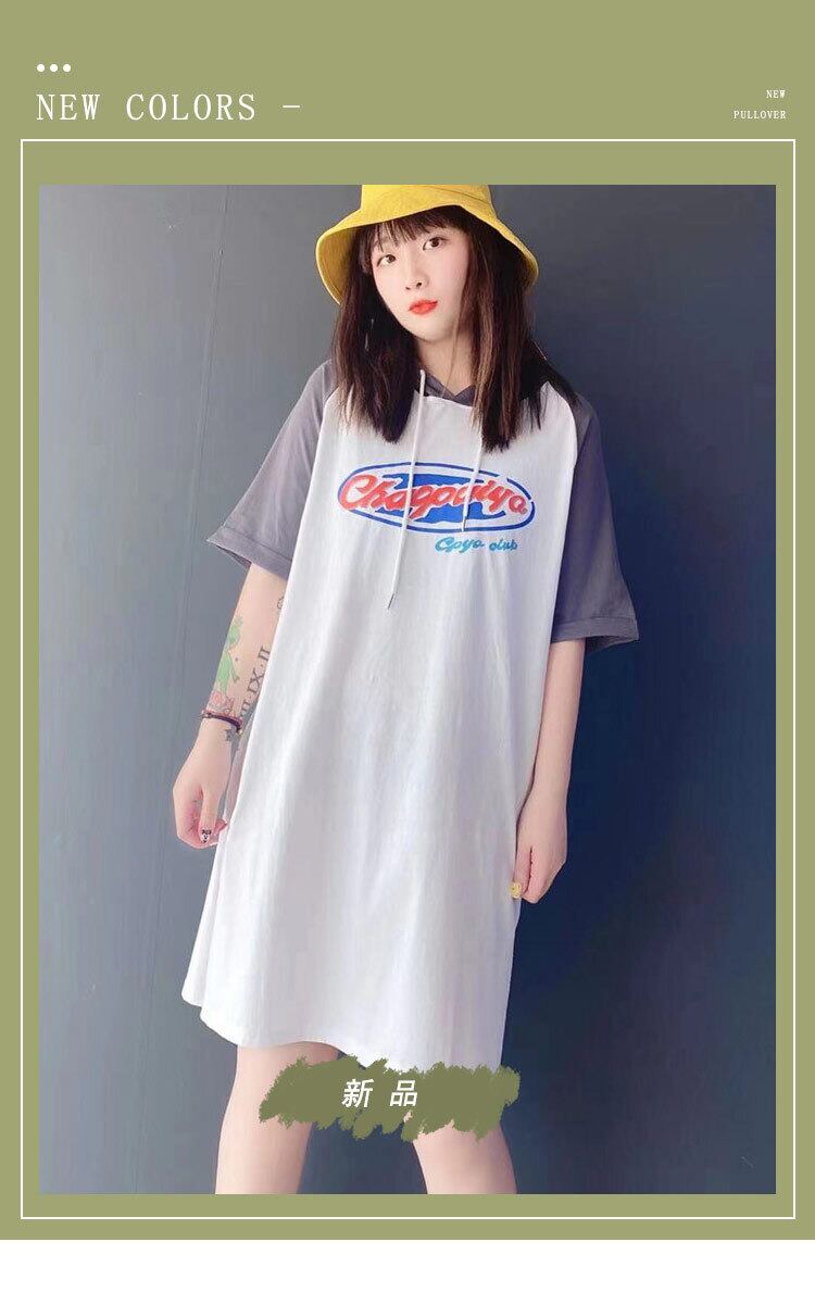 カラースカート サマーフードセーター ドレス 大きめサイズ 夏物 ステッチ ミックスインファッション92089642405