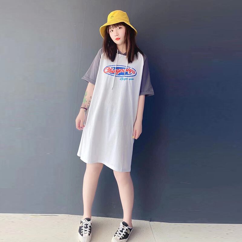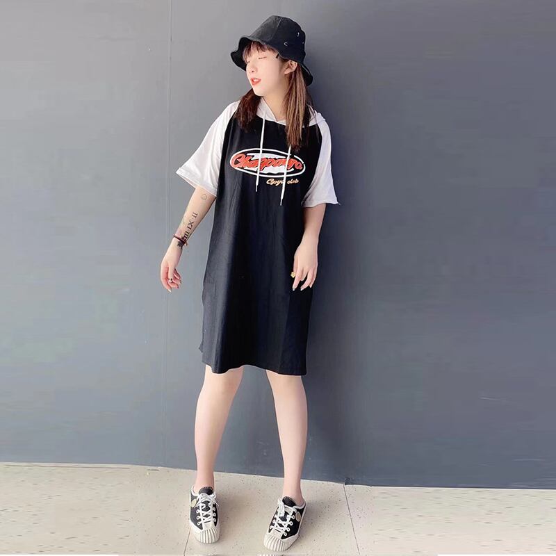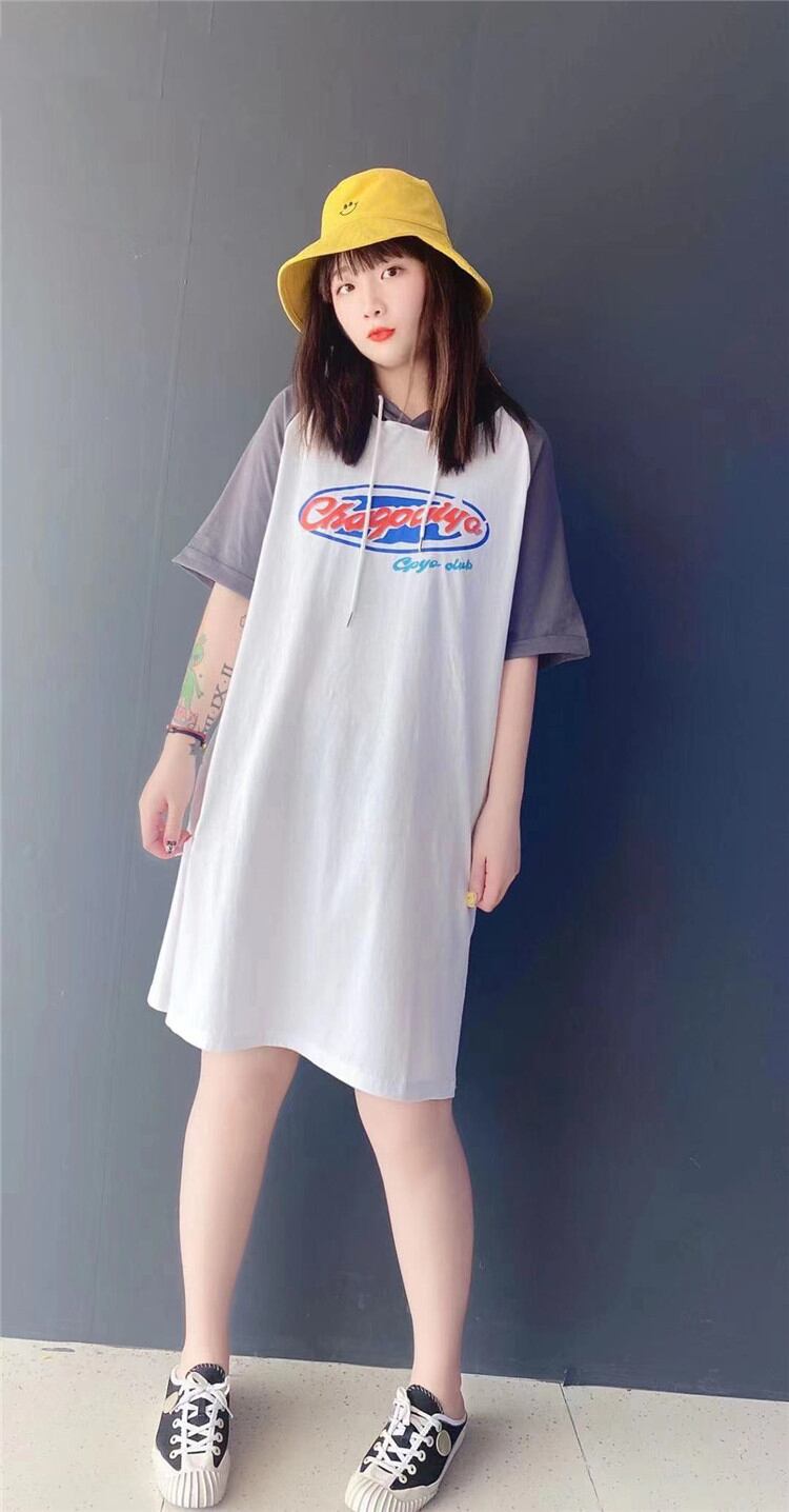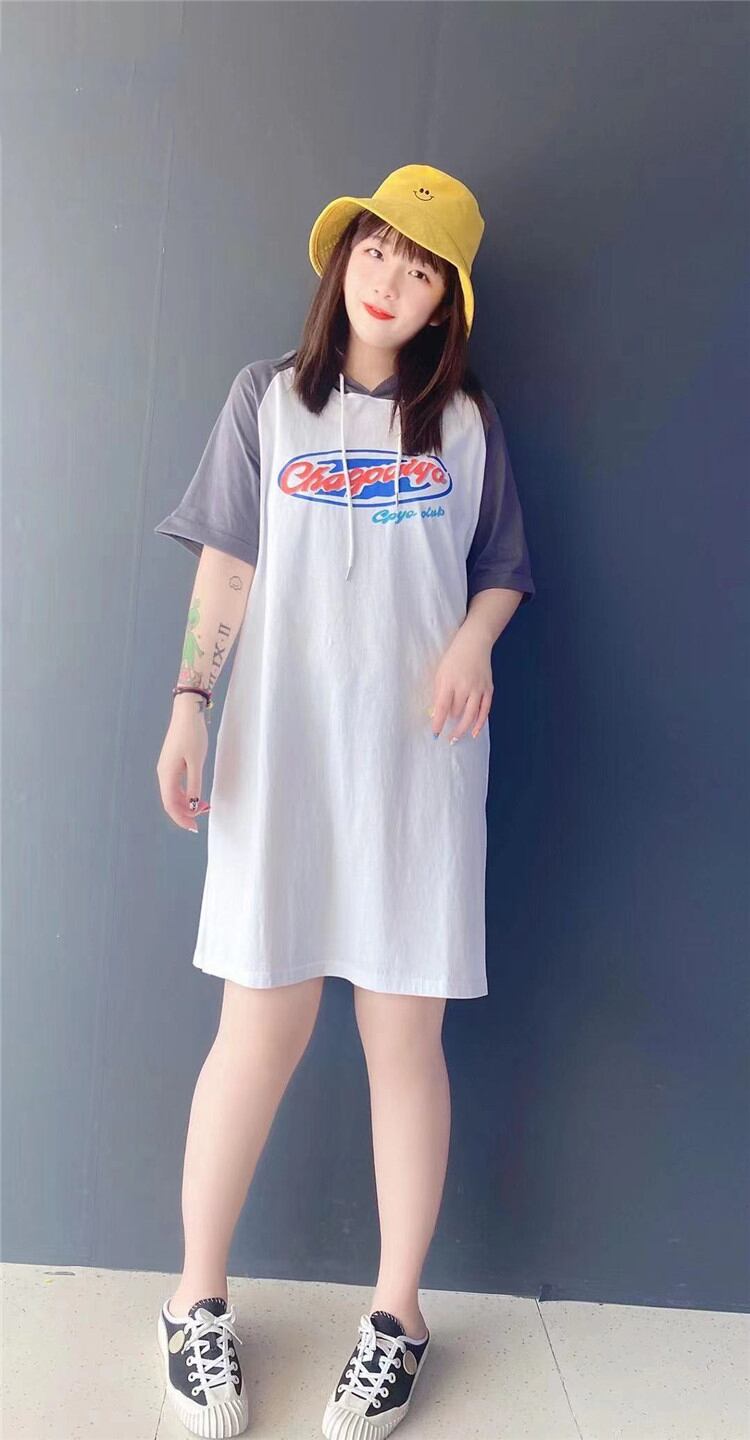 カラースカート サマーフードセーター ドレス 大きめサイズ 夏物 ステッチ ミックスインファッション92089642405