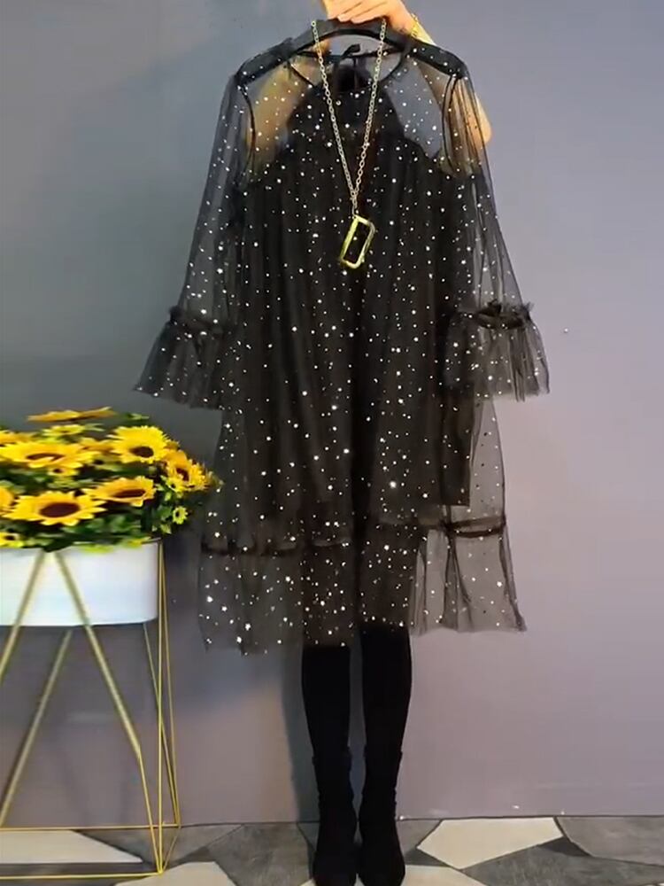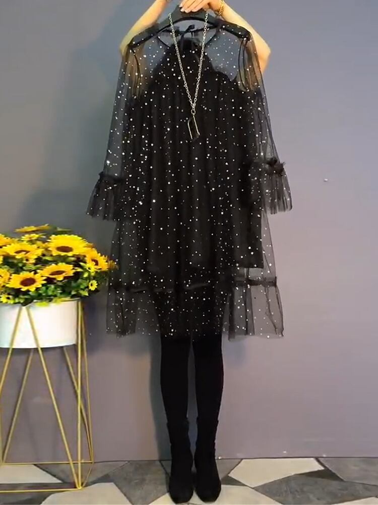 スプリング薄手ドレス レッド 大きめサイズ 春物 ミックスインファッション75920364222