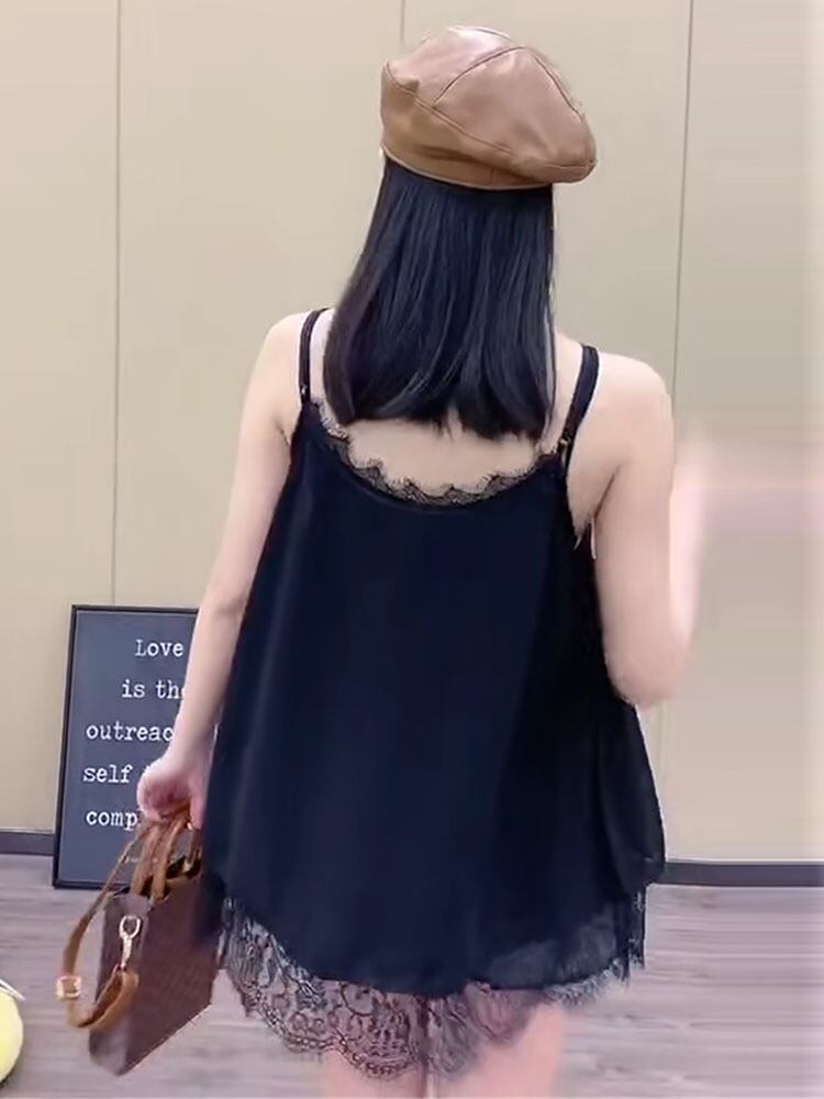 レディースルーズストラップレスノースリーブラウンドネックトップス 大きめサイズ Oネック ミックスインファッション24804084996