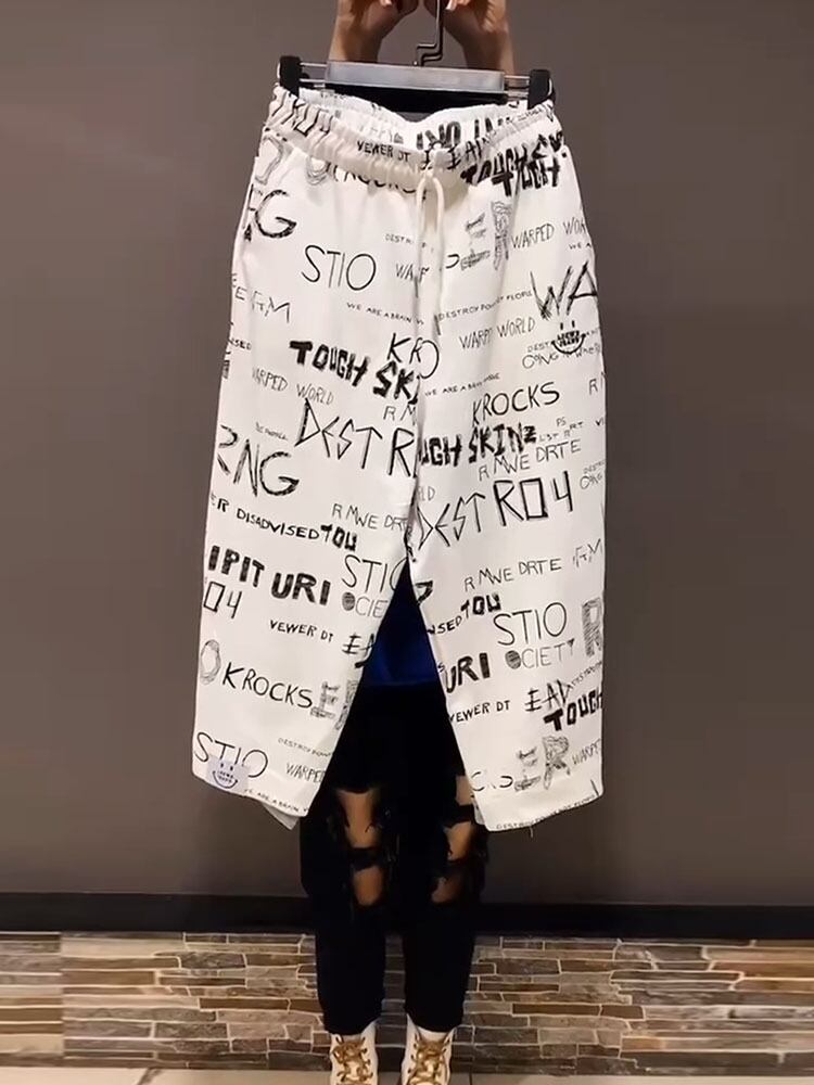 ハイウェストプリントレギンス レディースルーズカジュアル レース 大きめサイズ レースアップ ミックスインファッション72311017654