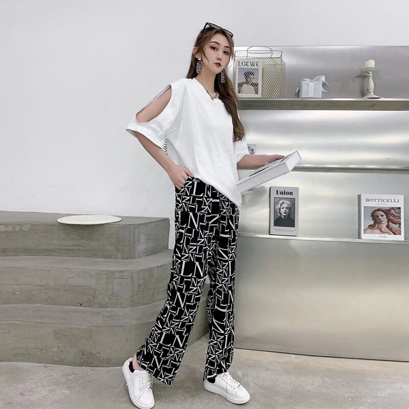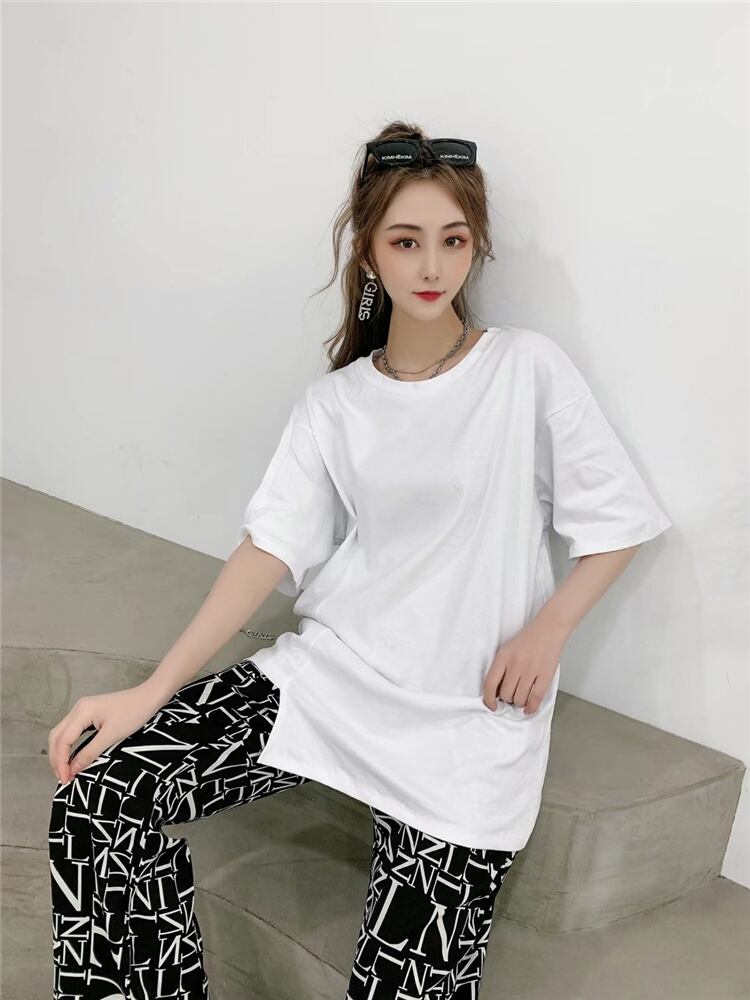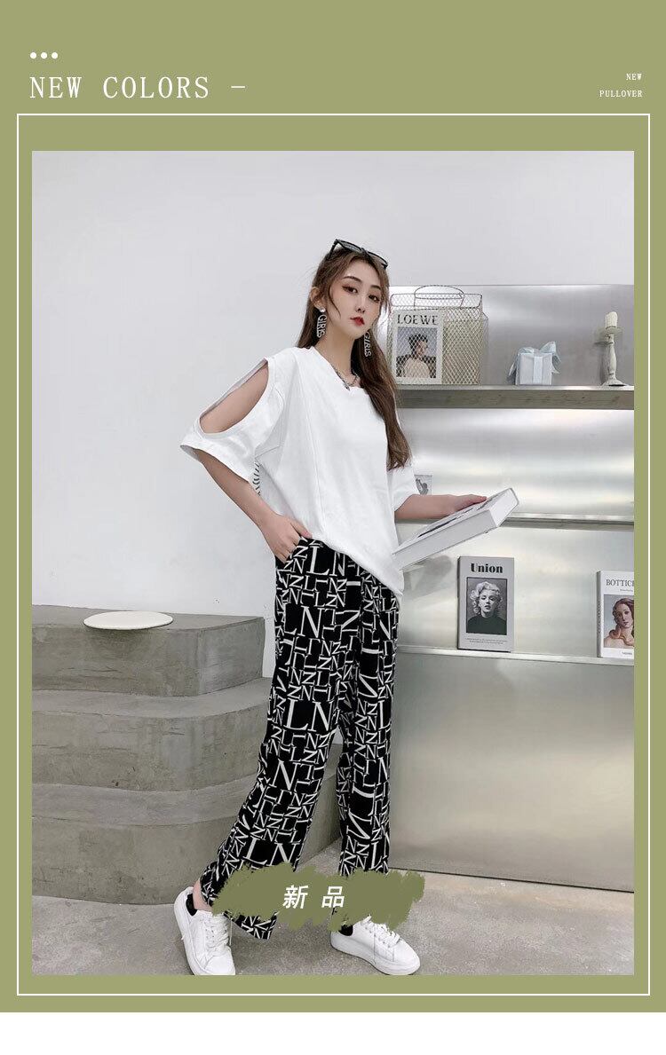 ストラップレスTシャツ カジュアルホワイトパンツ 大きめサイズ ミックスインファッション90066899346