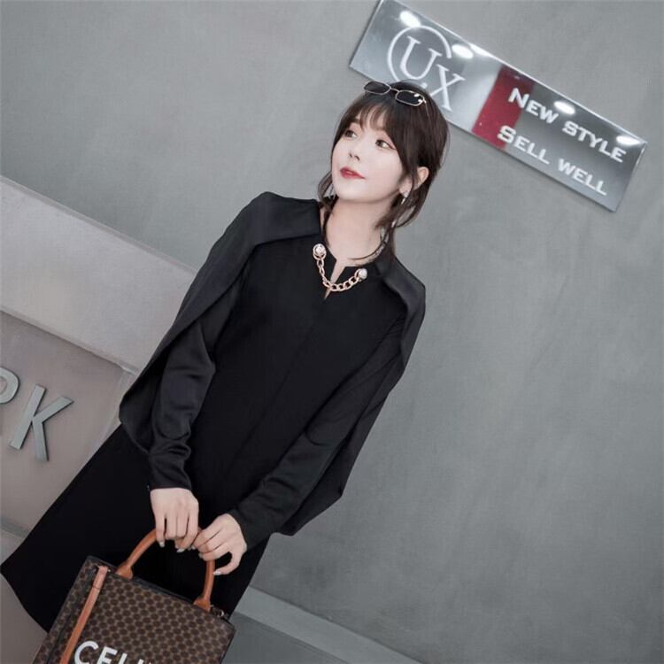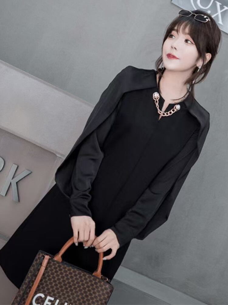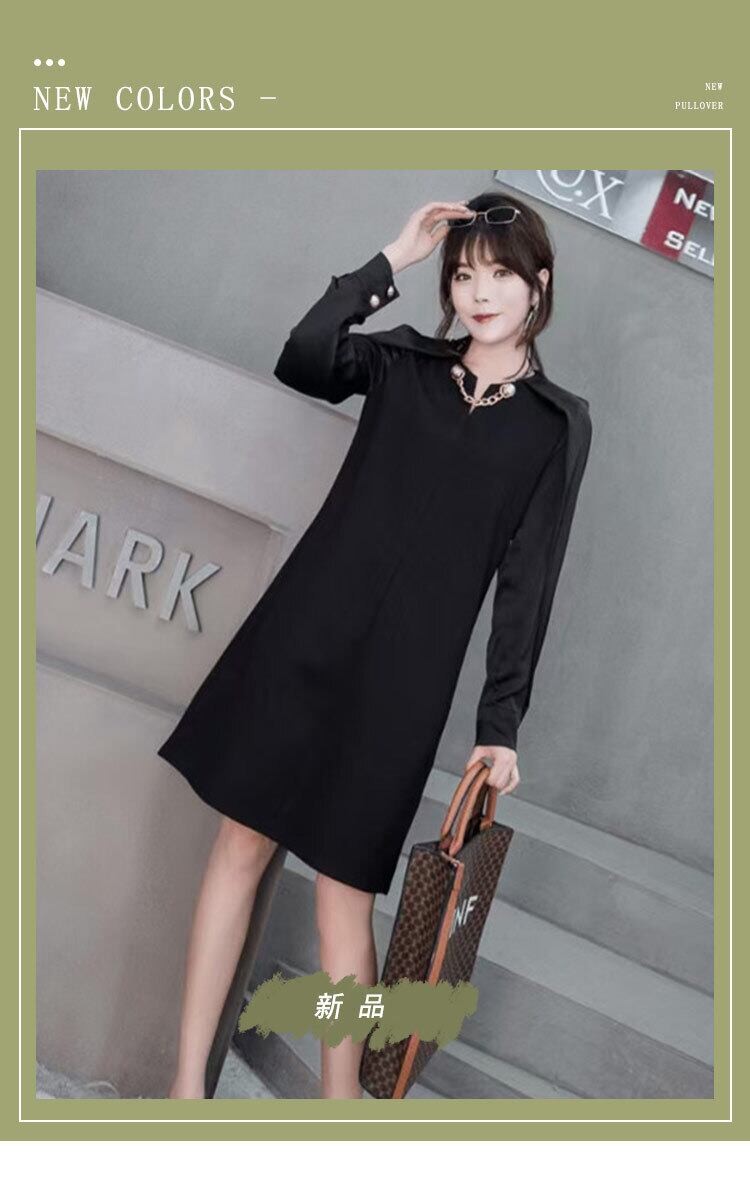 スプリングサマースタイルチェーン Vネック長袖スリーブシャツ ドレス ロング 春物 夏物 ミックスインファッション89801379660