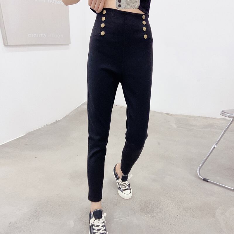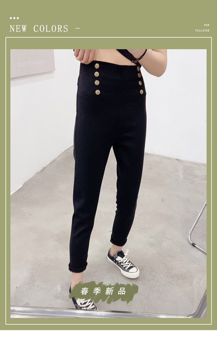 ブラックハイウェストレギンス スプリングメタルバックルスリムパンツ 春物 ミックスインファッション51538409938