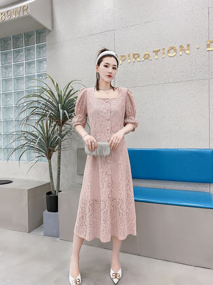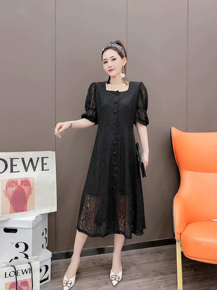 刺繍スカート カラーレースサマードレス 大きめサイズ 夏物 スクウェア ミックスインファッション92332952494