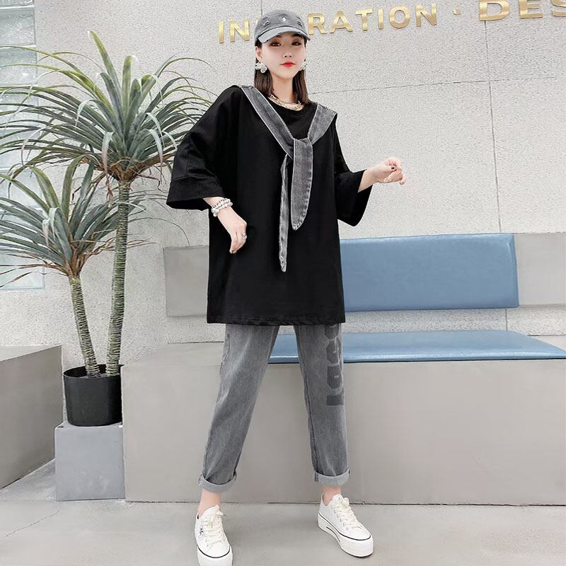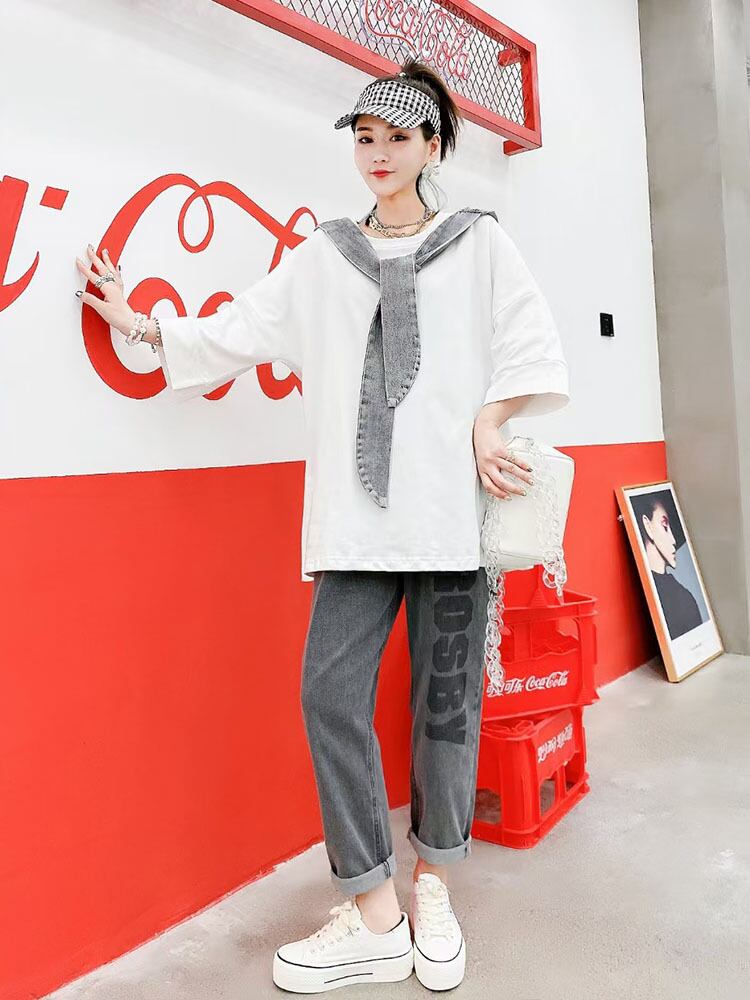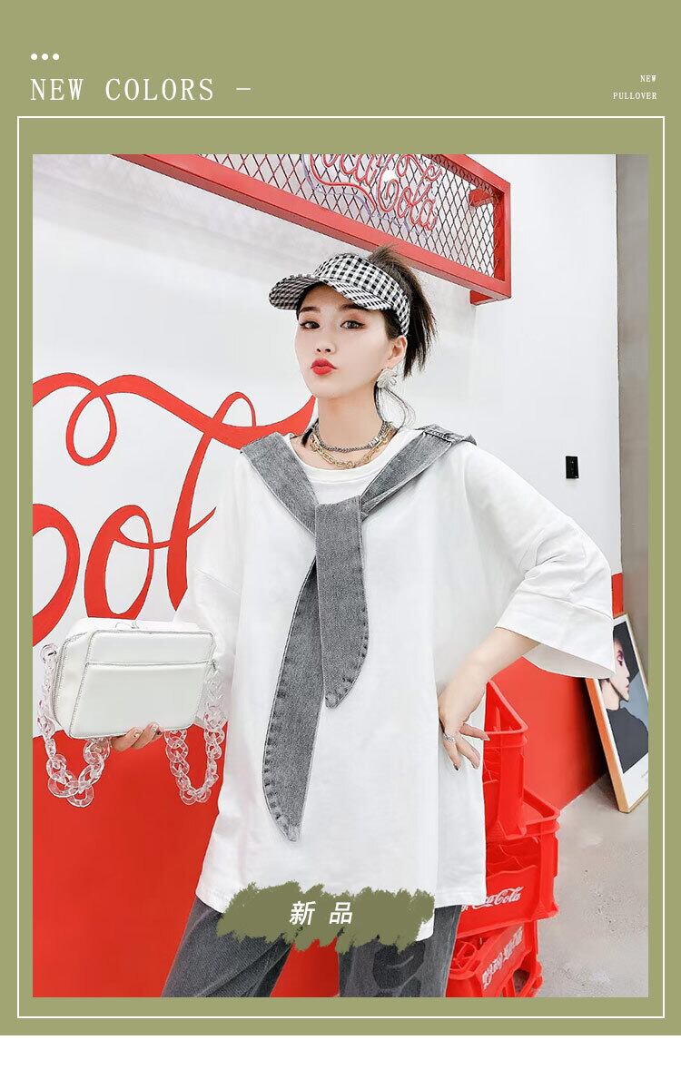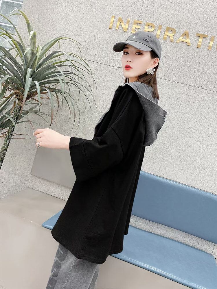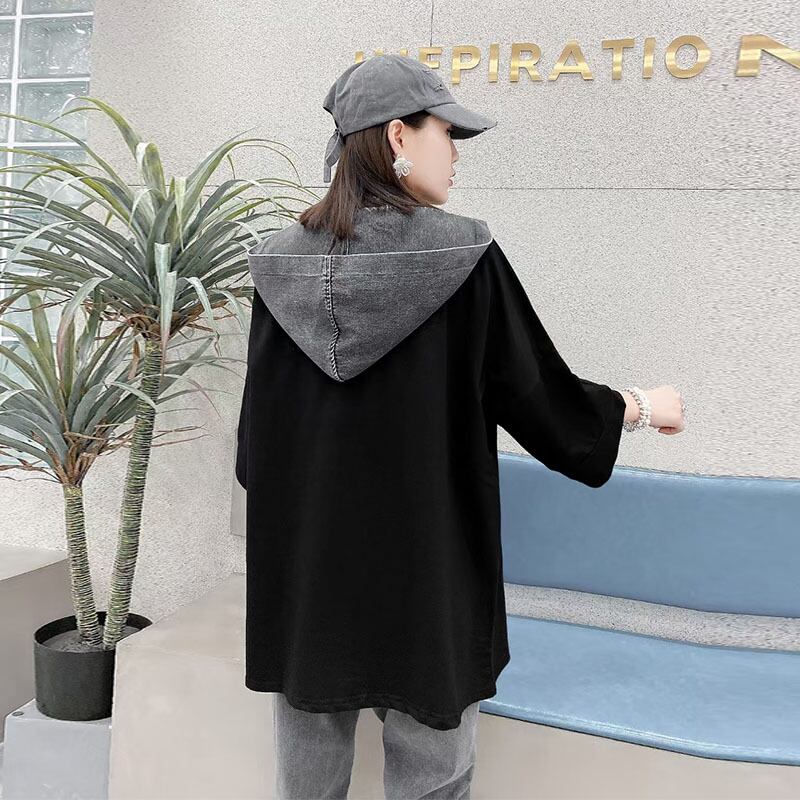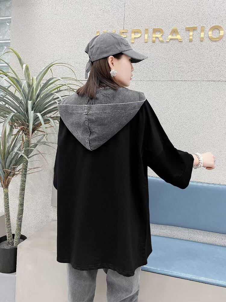フードラウンドネックTシャツ スプリングルーズトップス 春物 Oネック ミックスインファッション41112210777