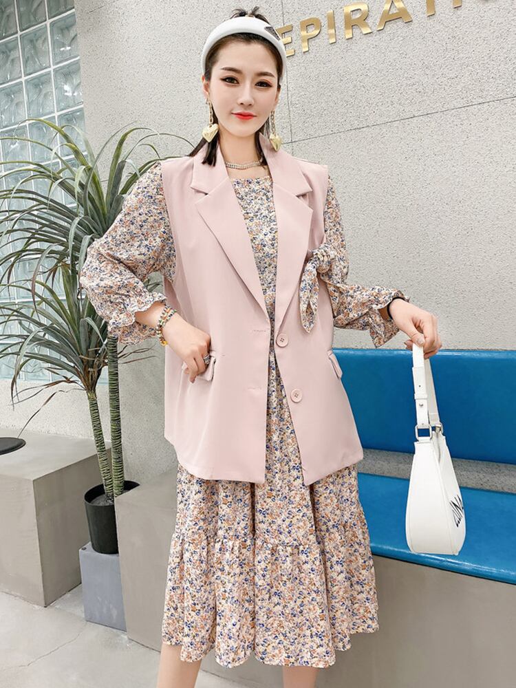 色:ピンクのツーピース,白い服と黒いドレスのツーピーススーツ