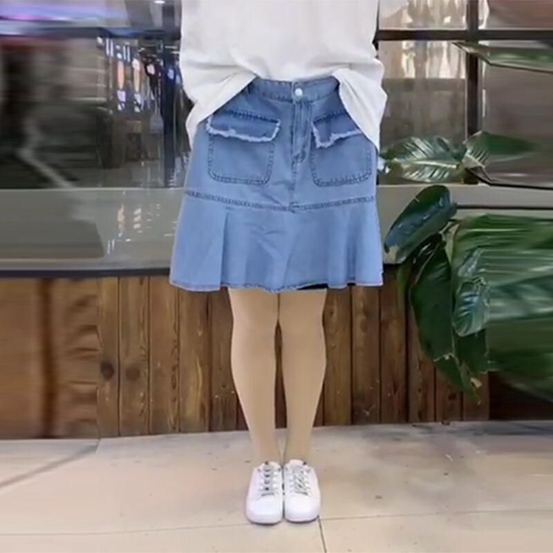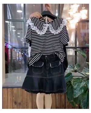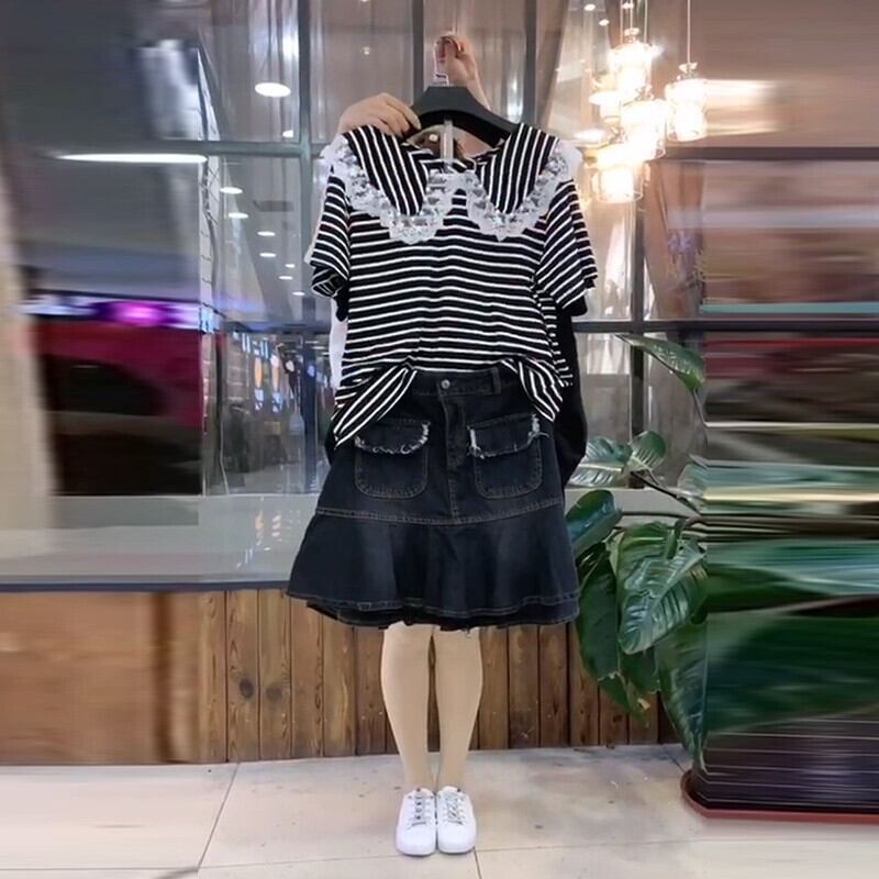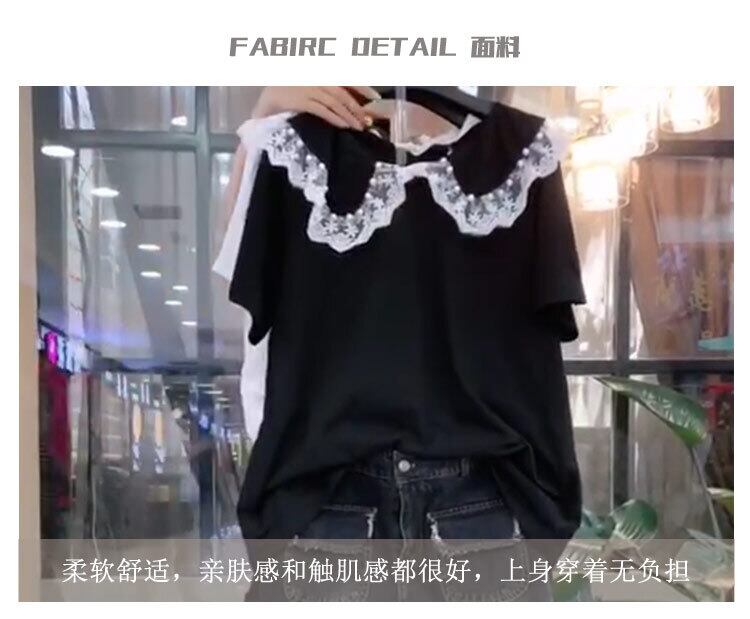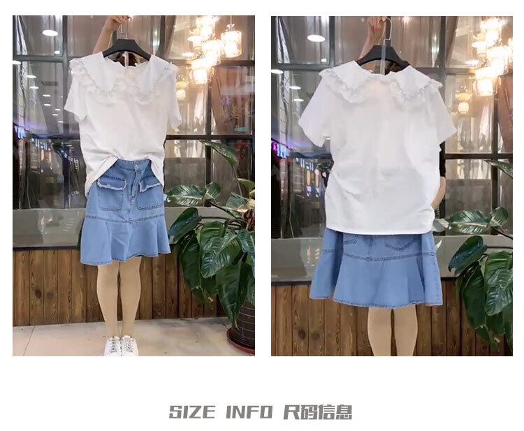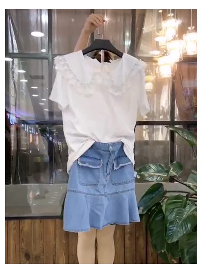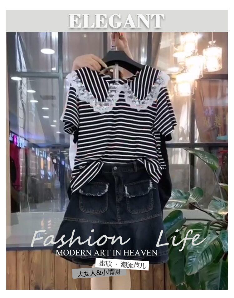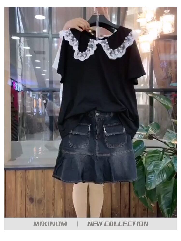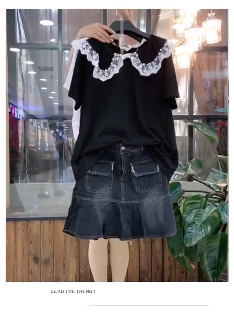 サマーレースカラーTシャツ ルーズトップス スカート 大きめサイズ 夏物 ミックスインファッション13618284507