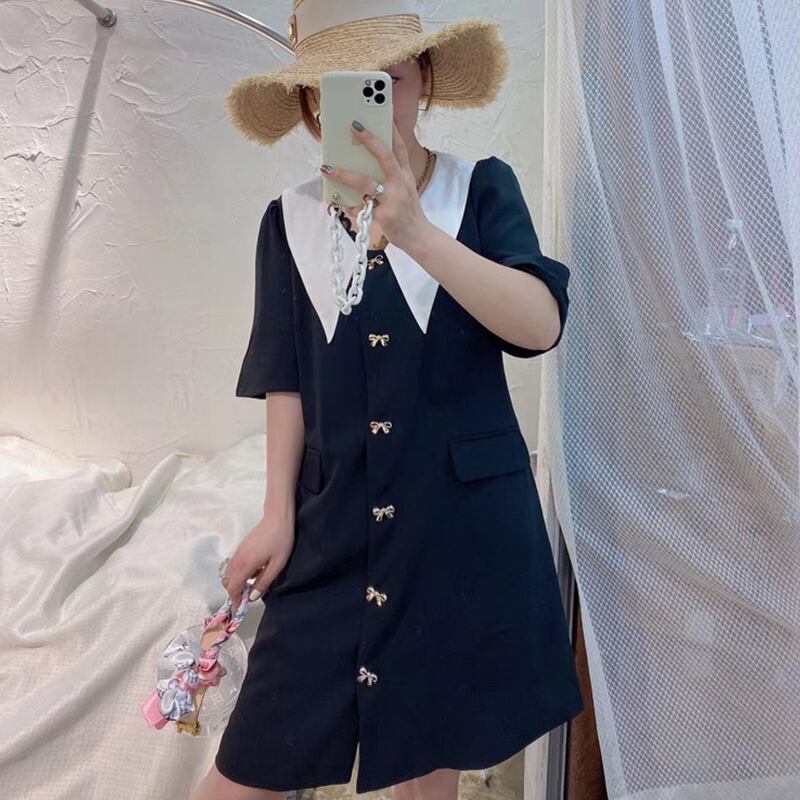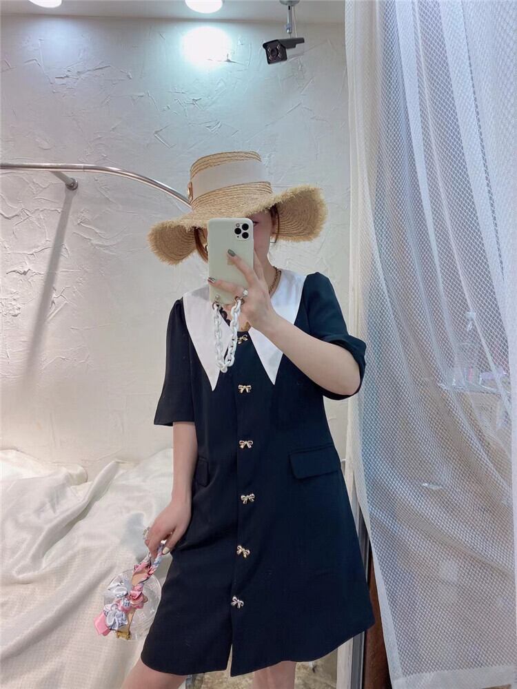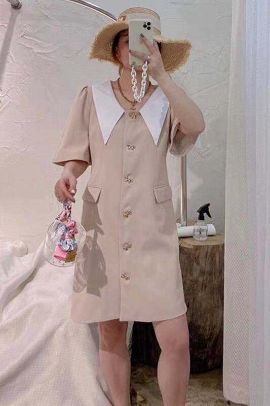 スタイルサマードレス スタンダードカラーダブルポケットスカート レトロ 大きめサイズ 夏物 ミックスインファッション33893890338
