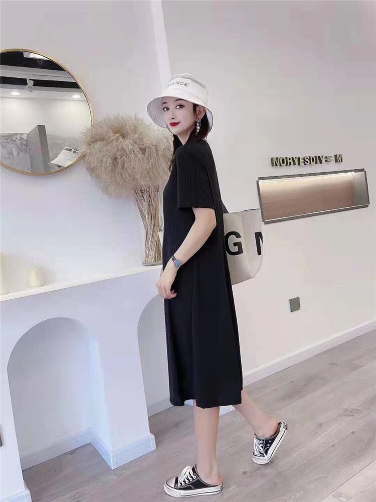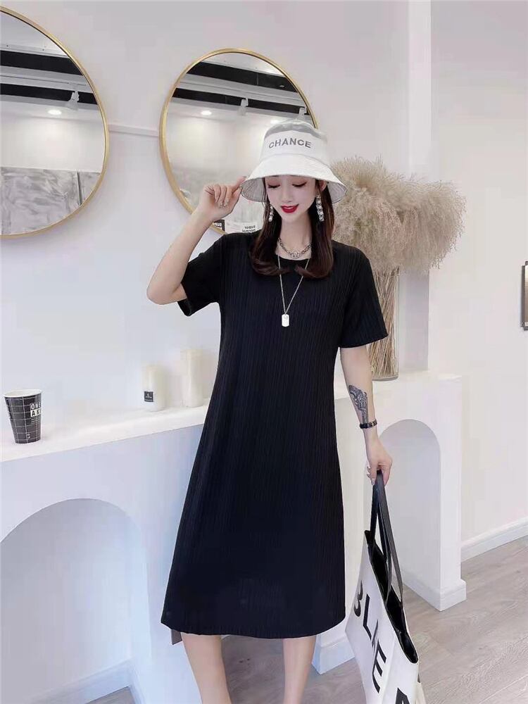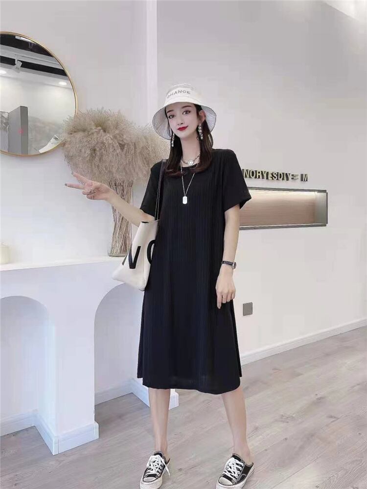 スプリングソリッド カラースカート ラウンドネックルーズカジュアルドレス 大きめサイズ 春物 Oネック ソリッドカラー ミックスインファッション53195566220