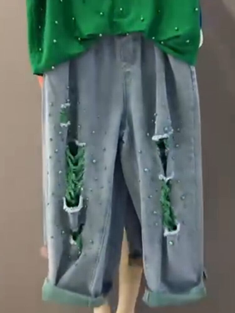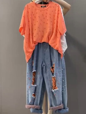 色:オレンジ,白い,緑,青,青い破れたズボン,緑の壊れた銅のズボン,オレンジリップドパンツ