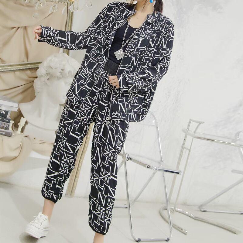 スプリングカジュアルジッパージャケット パンツ 大きめサイズ 春物 ミックスインファッション97639132015