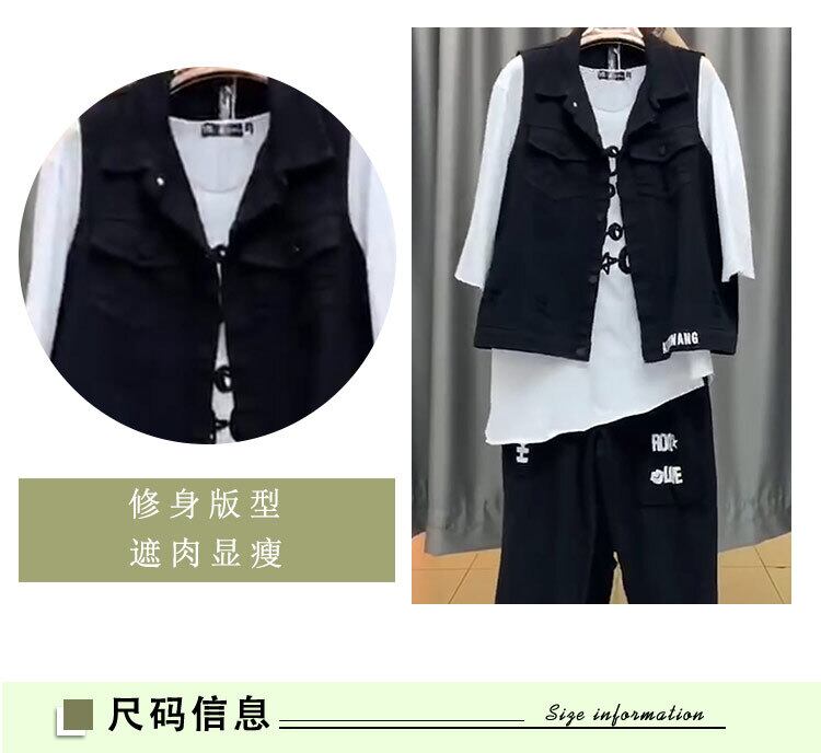 スプリングダブルポケットバックラウンドネックパターンカジュアルパンツ 大きめサイズ 春物 Oネック ステッチ ミックスインファッション26804761137