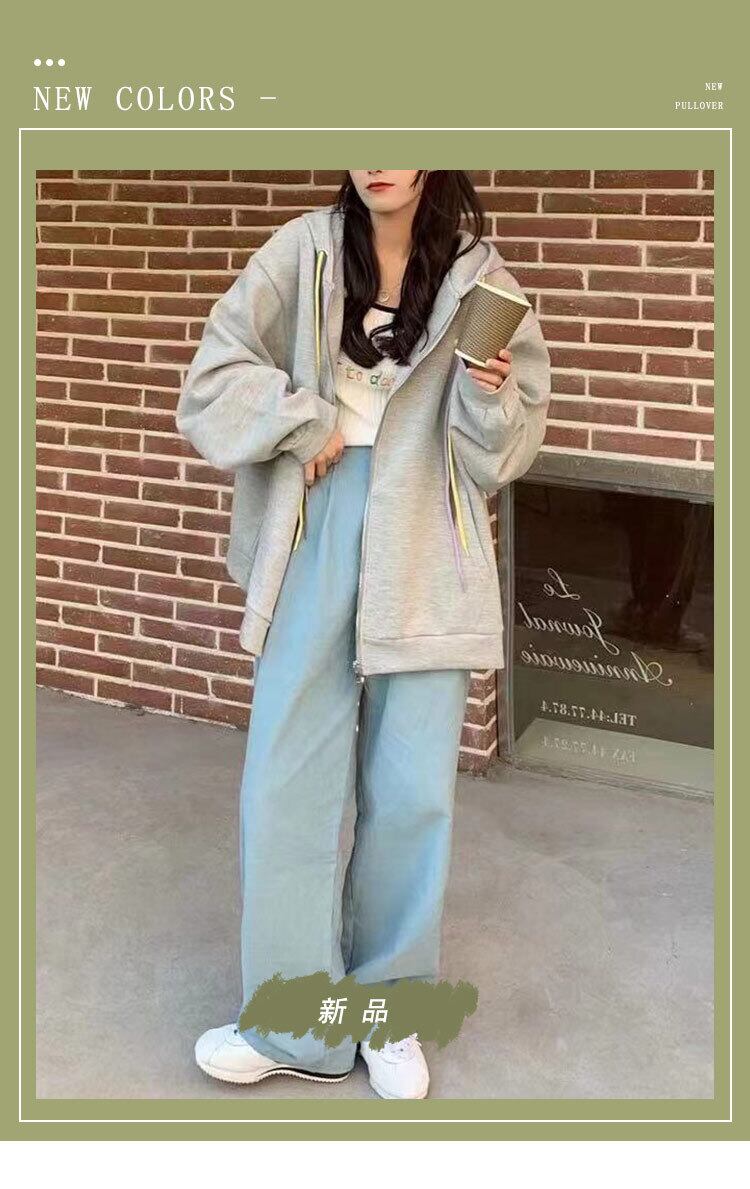 フードセーター スプリングジッパーカジュアルルーズスリムコート 大きめサイズ 春物 ミックスインファッション58303705009
