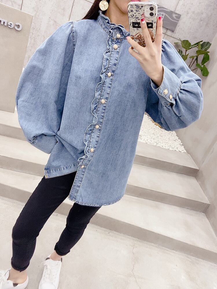 シャツ スプリングスタンダードカーディガンカラールーズスタイル ロング レトロ 春物 ミックスインファッション69321354025