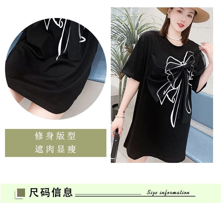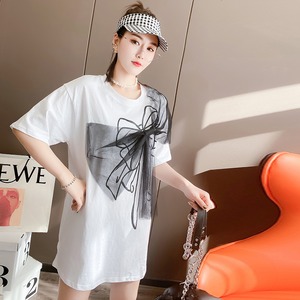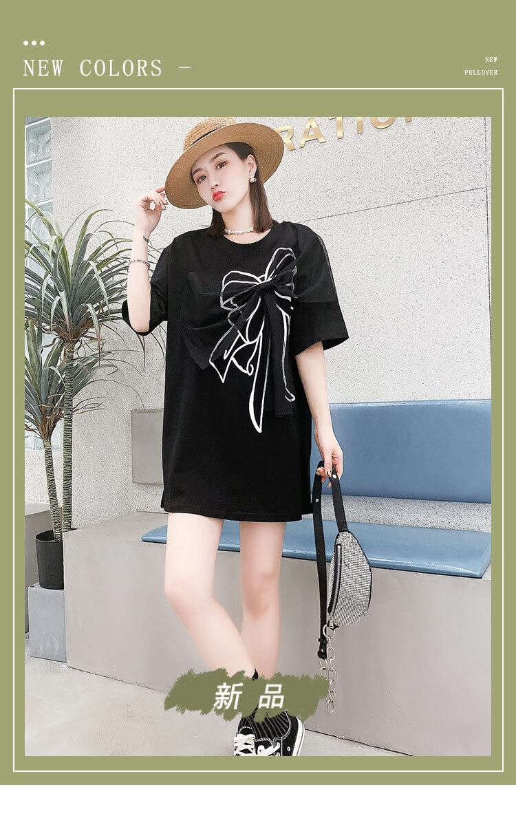 スプリングサマーラウンドネックリボン半袖スリーブTシャツ スカート ドレス ハーフスリーブ 春物 夏物 Oネック ミックスインファッション19538106397
