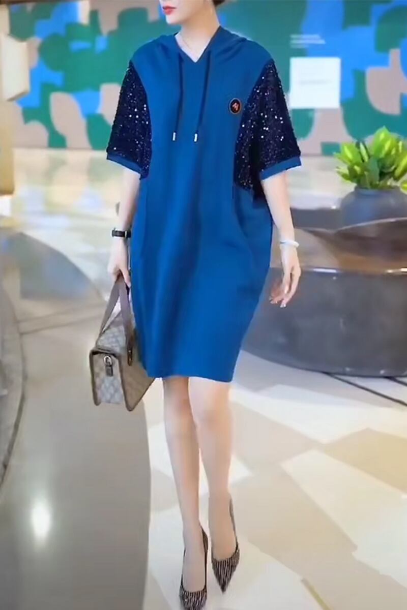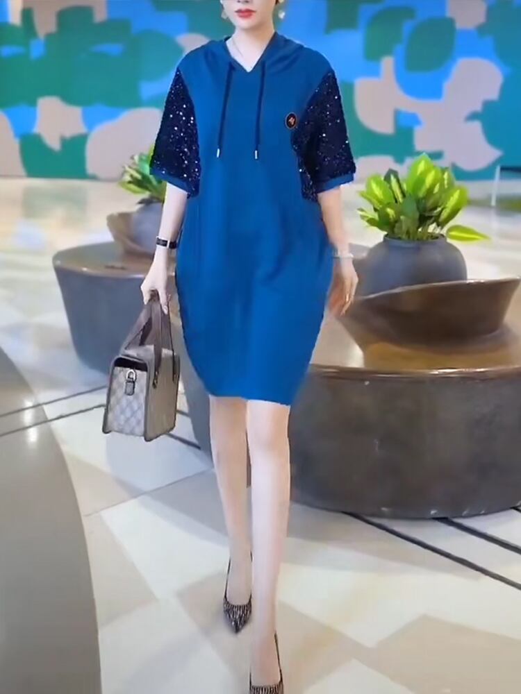 スタイルフードドレス スプリングサマールーズスパンコールスカート 大きめサイズ 春物 夏物 ステッチ ミックスインファッション61538037615