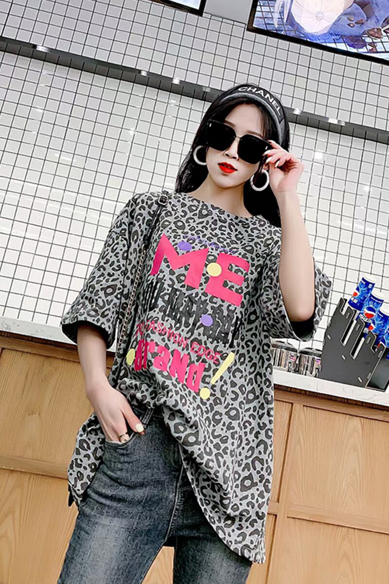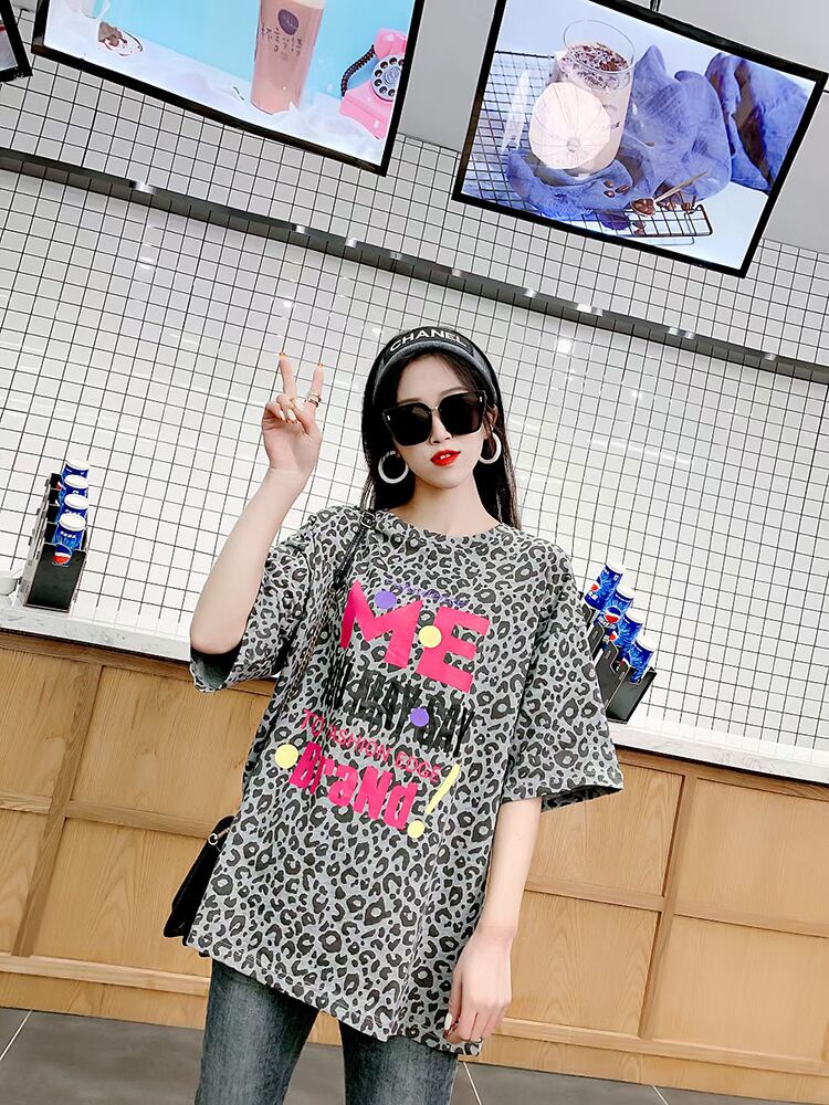スプリングルーズシャツ レオパードプリント柄Tシャツ 大きめサイズ 春物 ミックスインファッション354150977