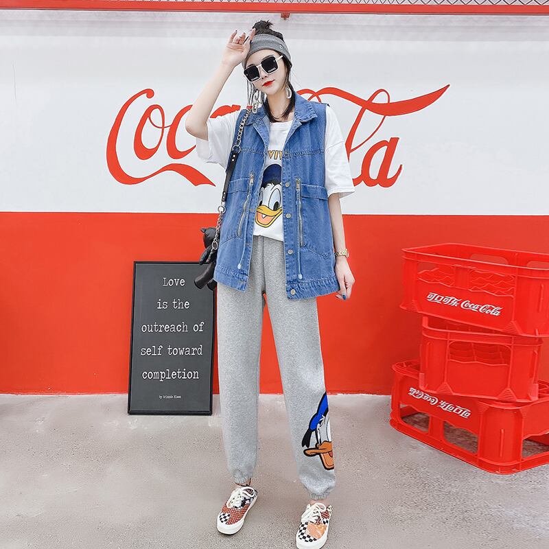 色:青いベスト,ホワイトT,グレーパンツ