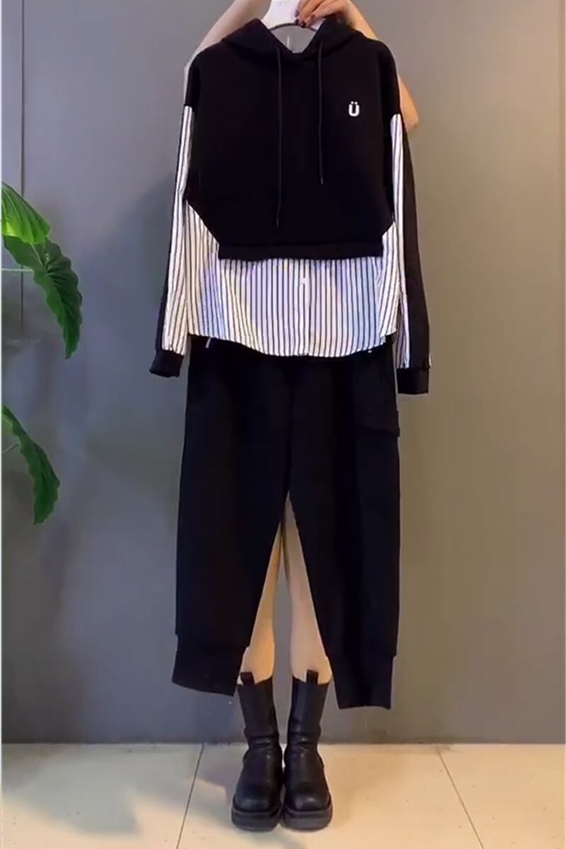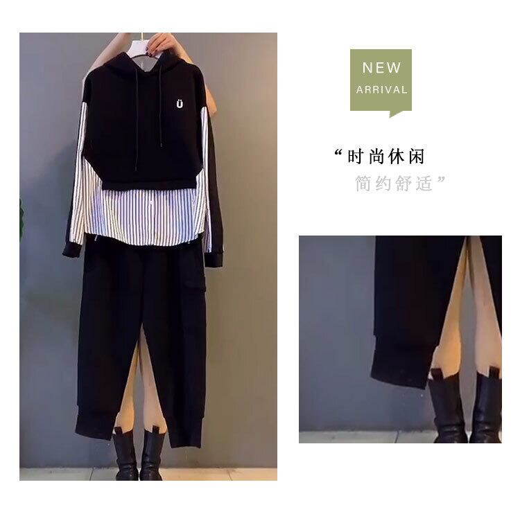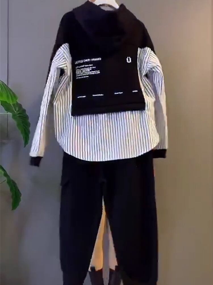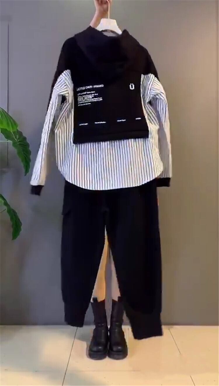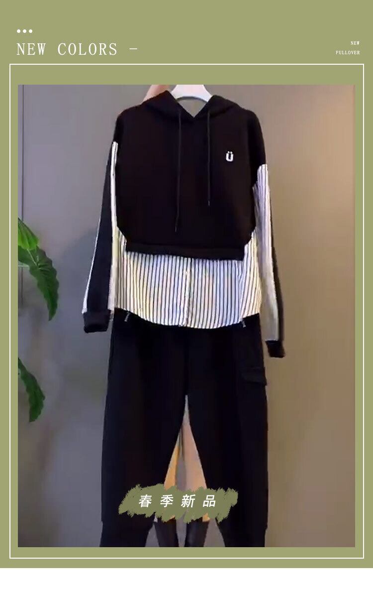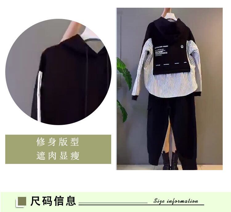 スプリングスタイルフードストライプセーター ポケット 大きめサイズ 春物 ステッチ ミックスインファッション99563742198