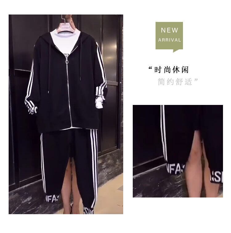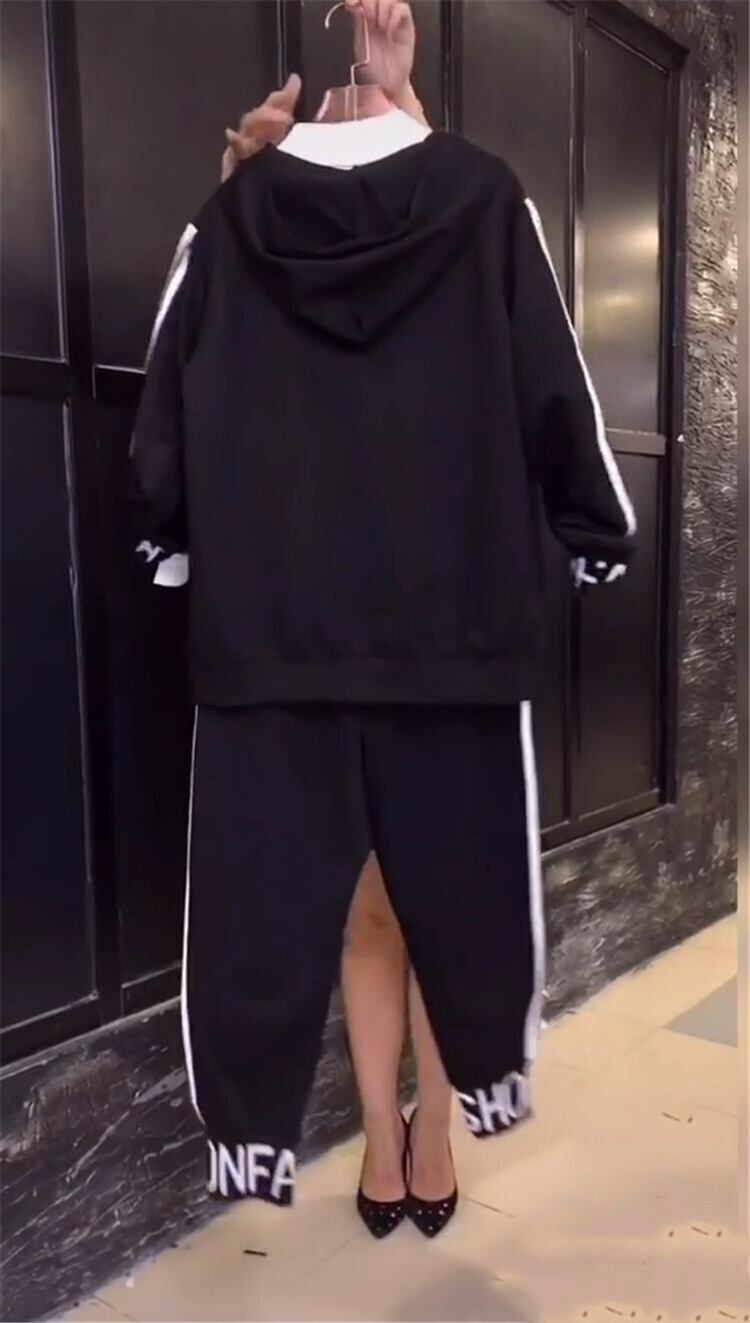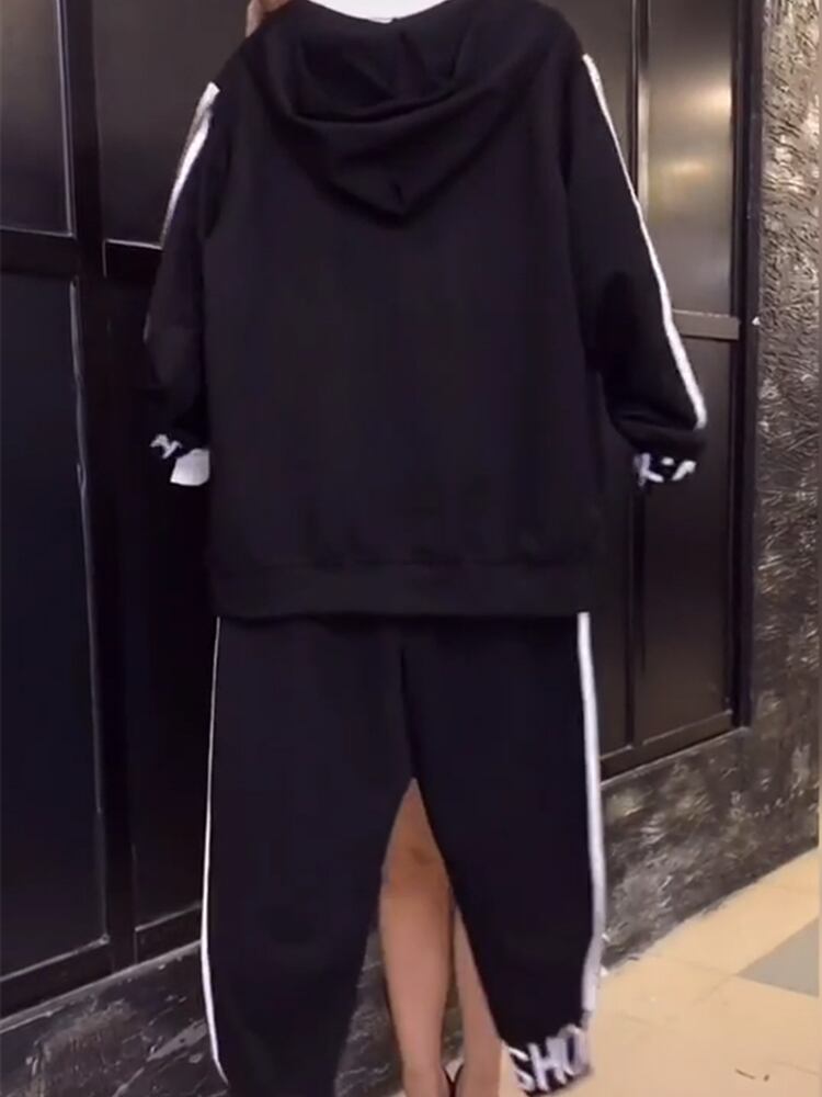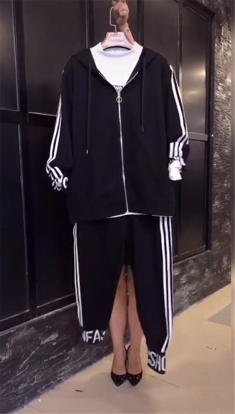 スプリングフードジッパースリーブストライプジャケット サイドパンツ 大きめサイズ 春物 ミックスインファッション37275999907