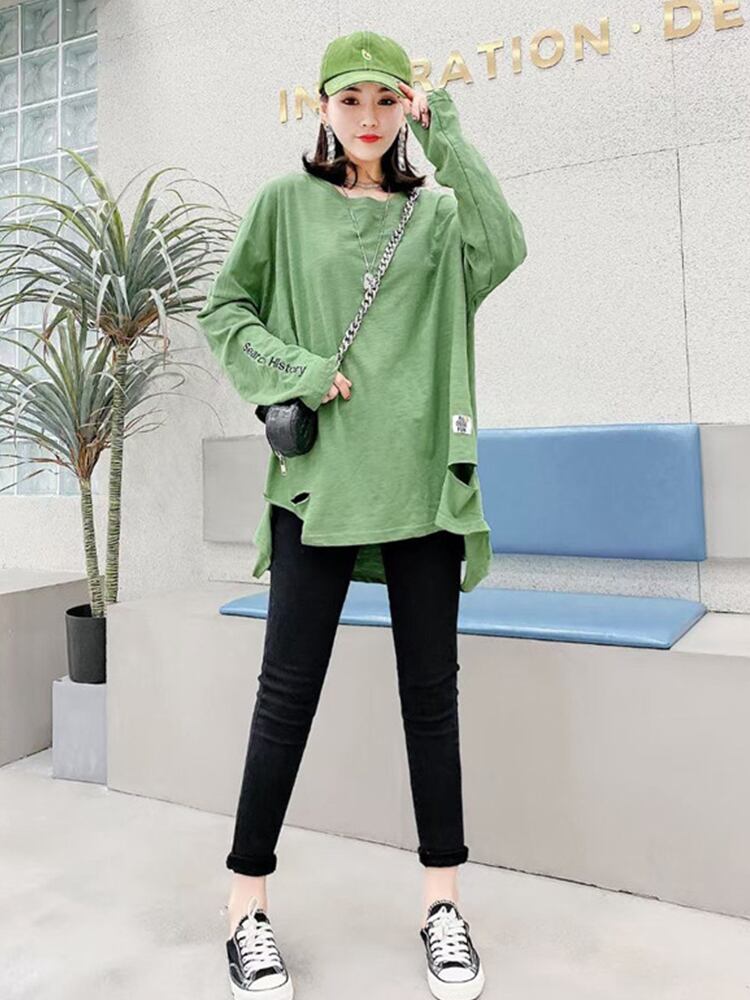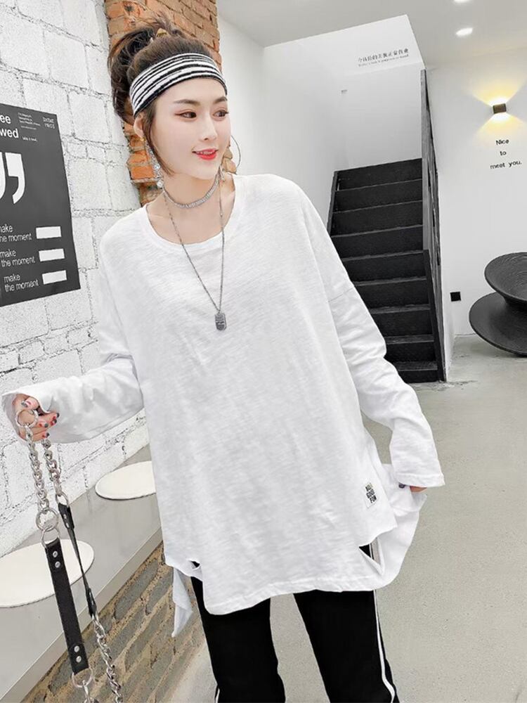 スプリングロングTシャツ シャツ 大きめサイズ 春物 ミックスインファッション22416673195