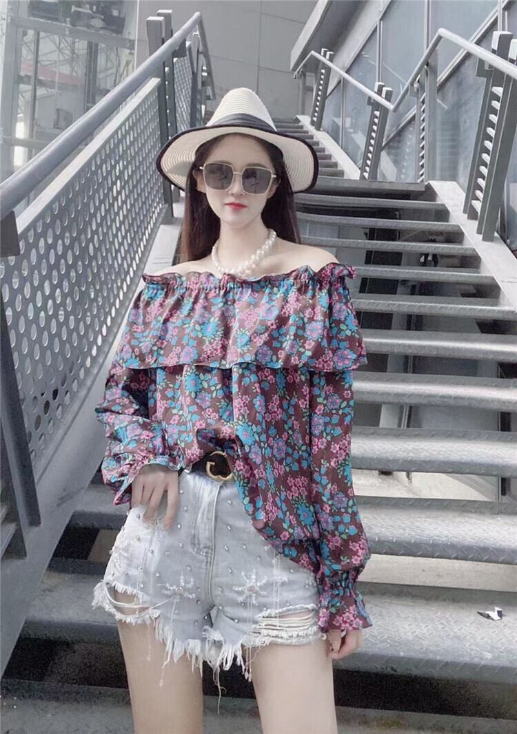シフォンシャツ ショートサマースタイルフローラルブラウス 夏物 花柄 ミックスインファッション94858097344