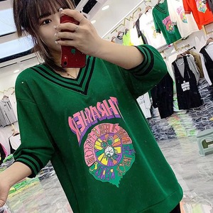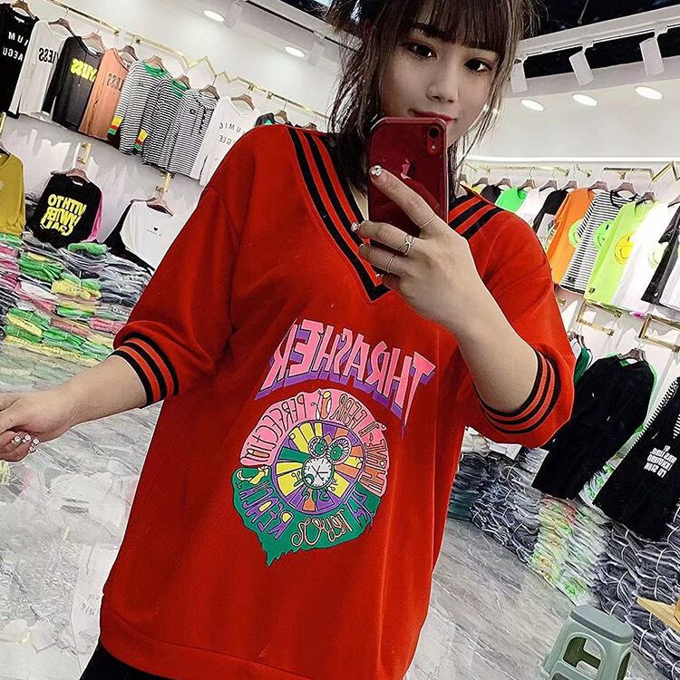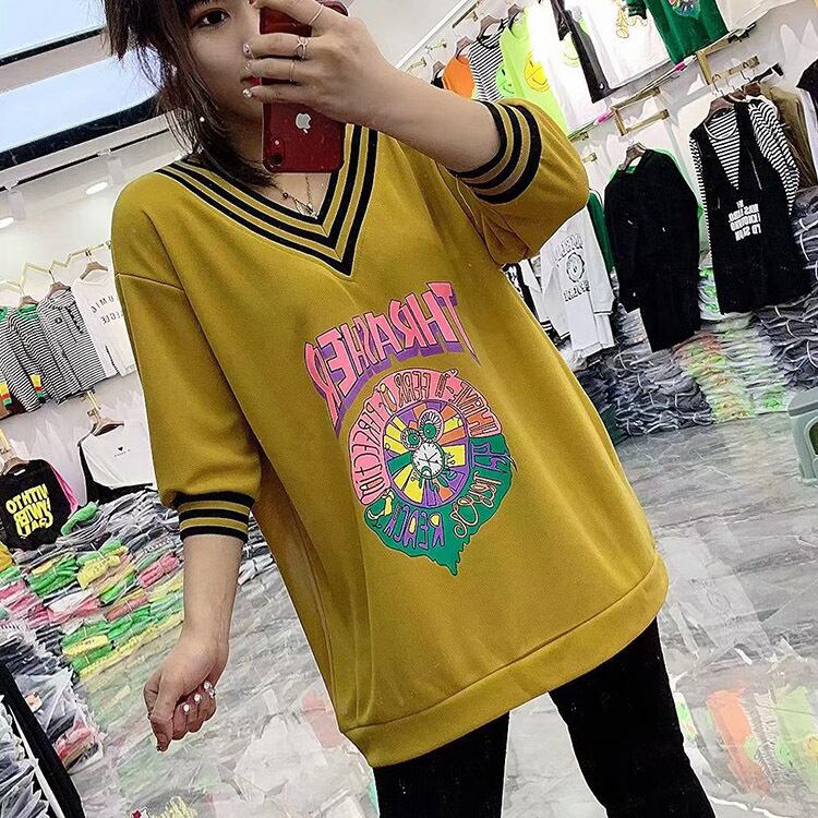 スプリングVネックルーズスリーブシャツ レディースTシャツ トップス 大きめサイズ 春物 ミックスインファッション6444476868