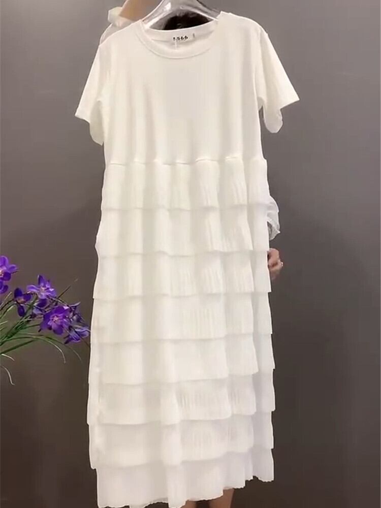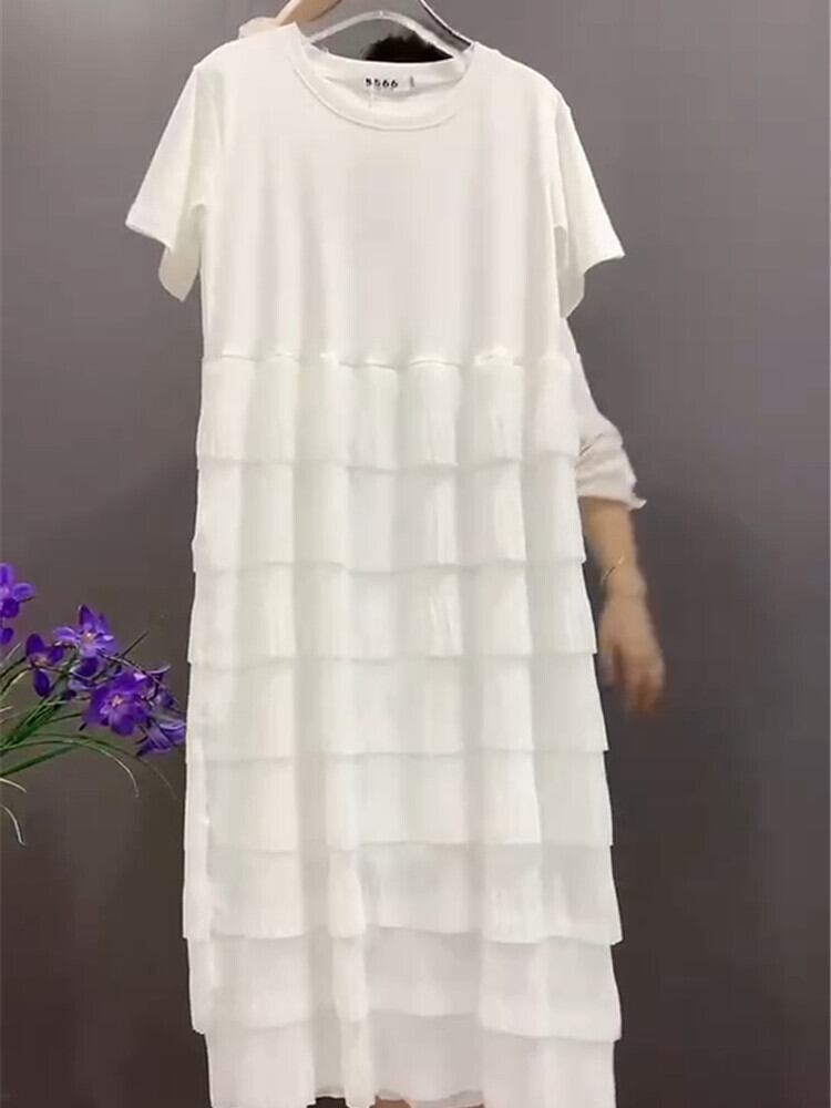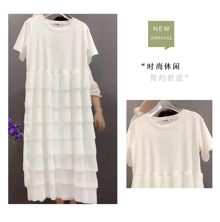 スプリングラウンドネックメッシュ半袖スリーブドレス サマー ハーフスリーブ 大きめサイズ 春物 夏物 Oネック ミックスインファッション6068109072
