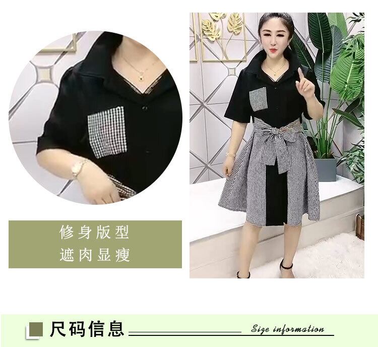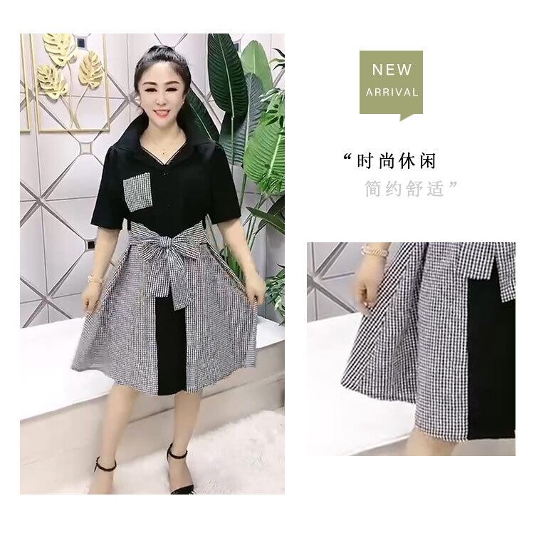 スカート サマーカラー格子柄ドレス 大きめサイズ 夏物 ステッチ ミックスインファッション61153261496