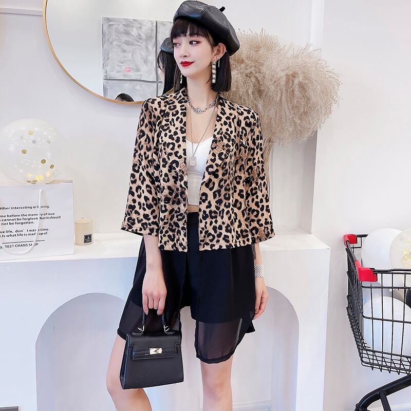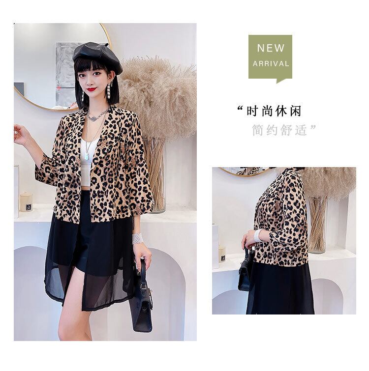 メッシュジャケット サマールーズカーディガンレオパードプリント柄トップス 大きめサイズ 夏物 ステッチ ミックスインファッション21216106511