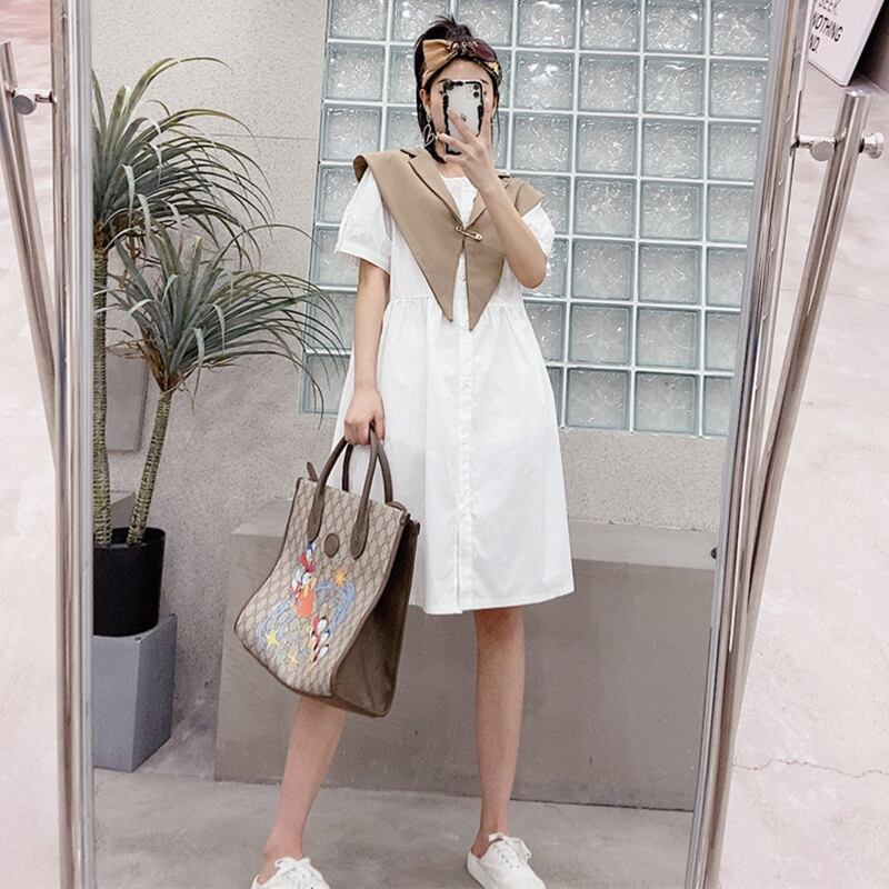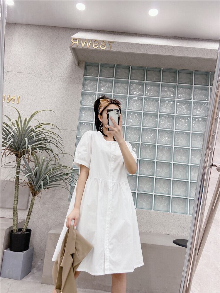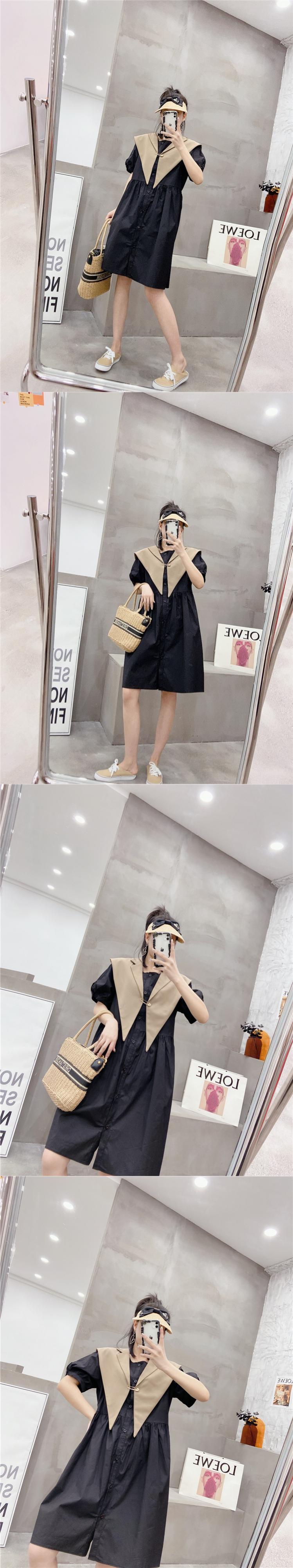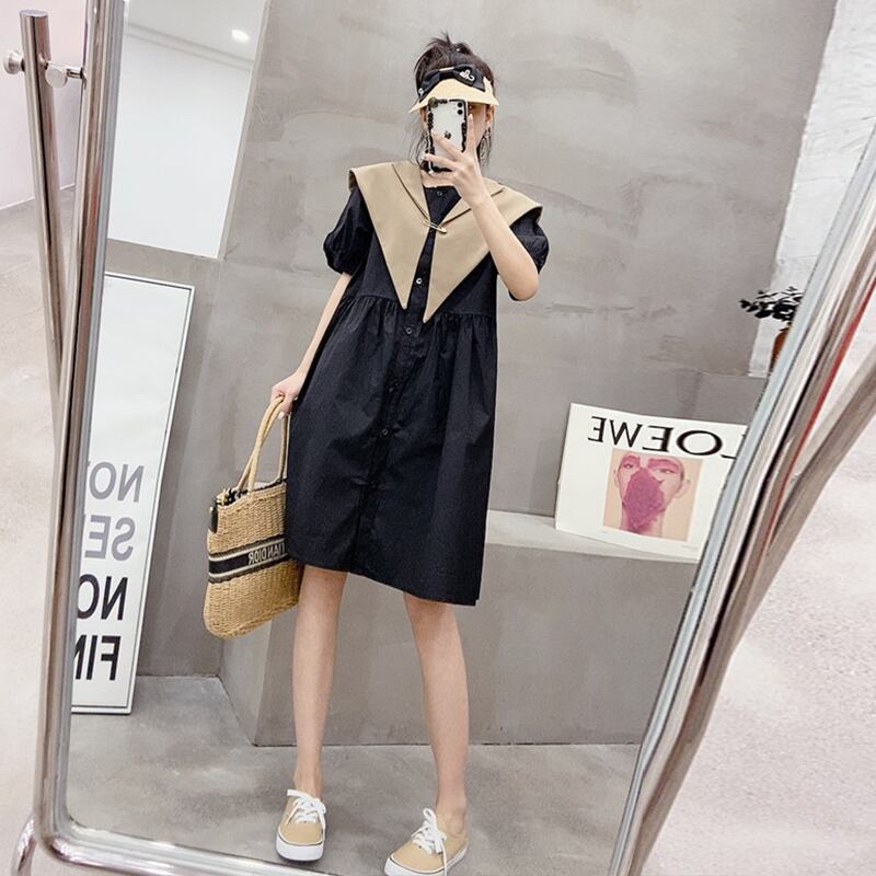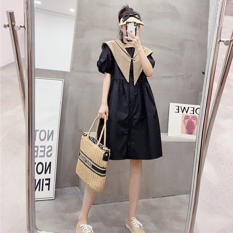 カラーソリッド 半袖スリーブルーズドレス ハーフスリーブ 大きめサイズ 大人ガーリー スウィート キュート カジュアル ソリッドカラー ミックスインファッション84477611295