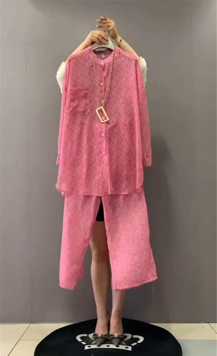 薄手サマーシャツ カジュアルパンツ レッド 大きめサイズ 夏物 ミックスインファッション10863473487