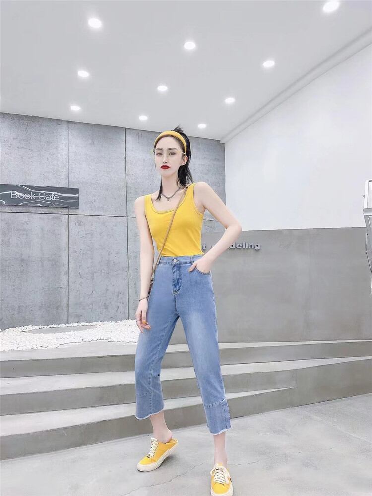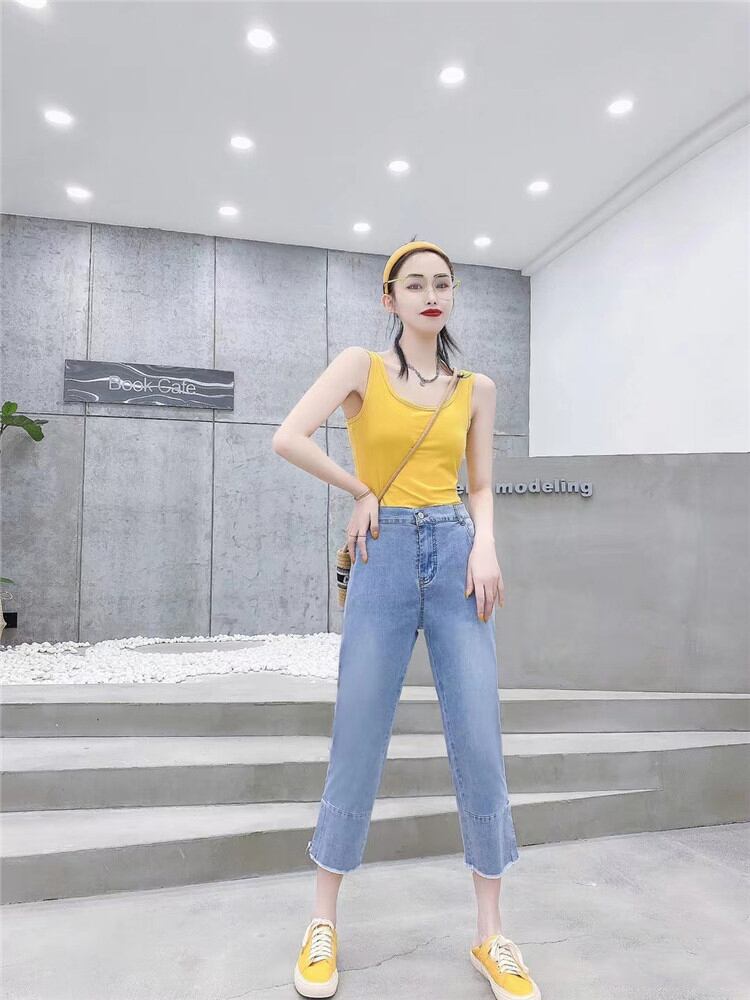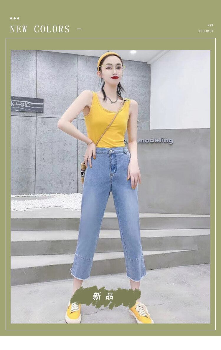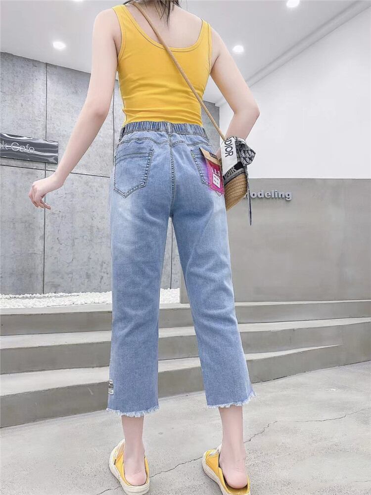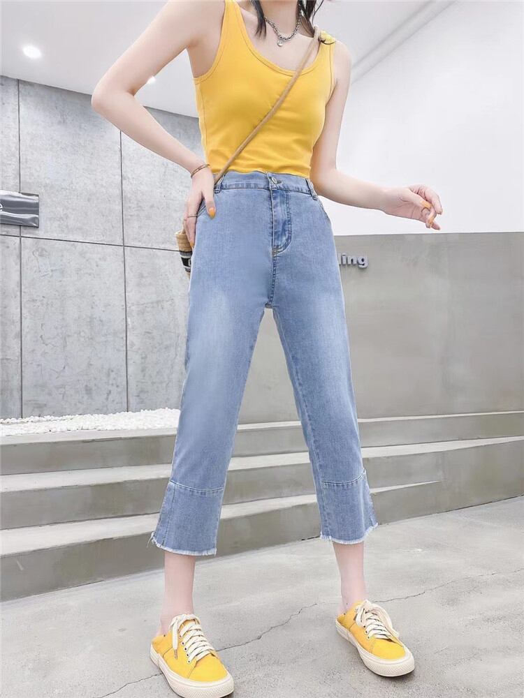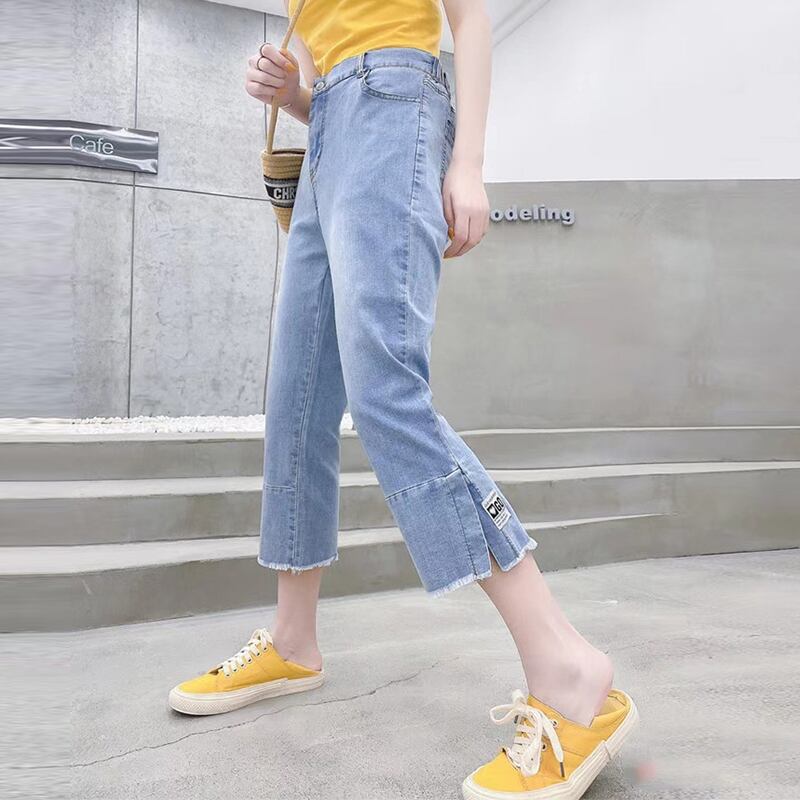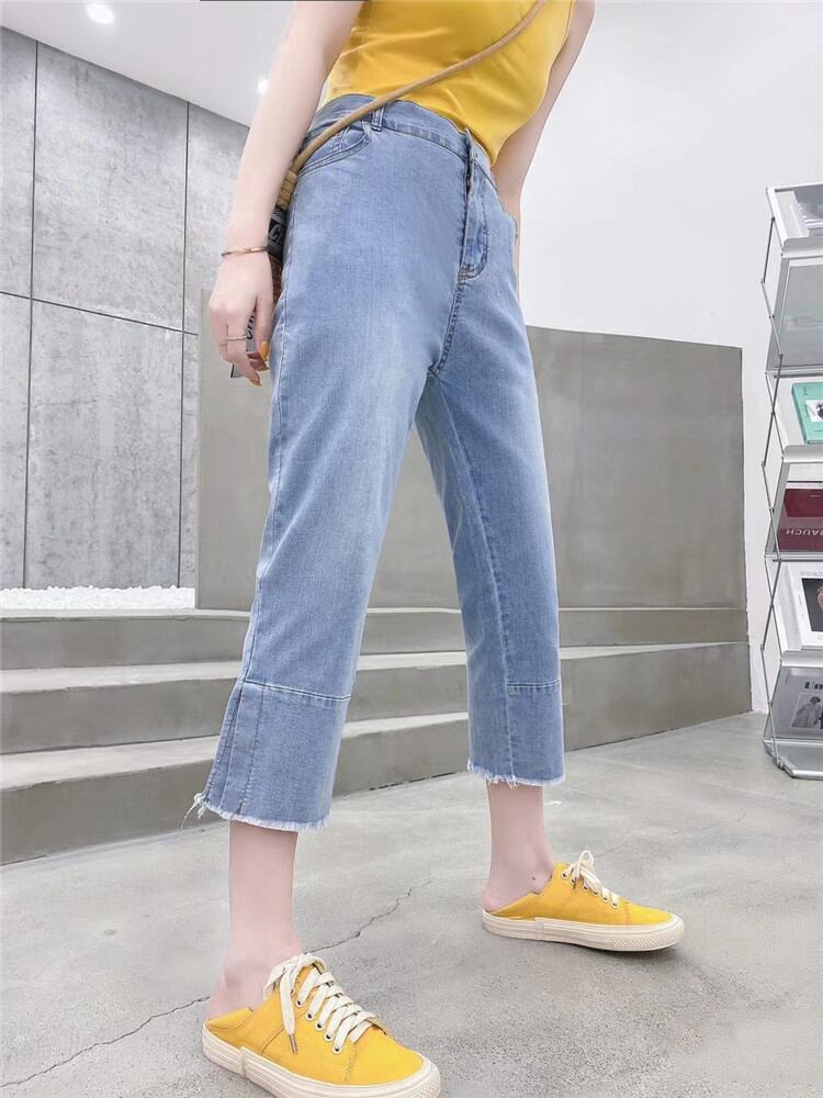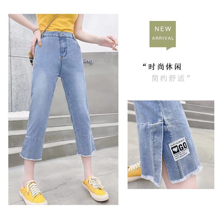 ジーンズ カジュアルクロップドサイドスリット薄手パンツ 大きめサイズ ミックスインファッション12396642345
