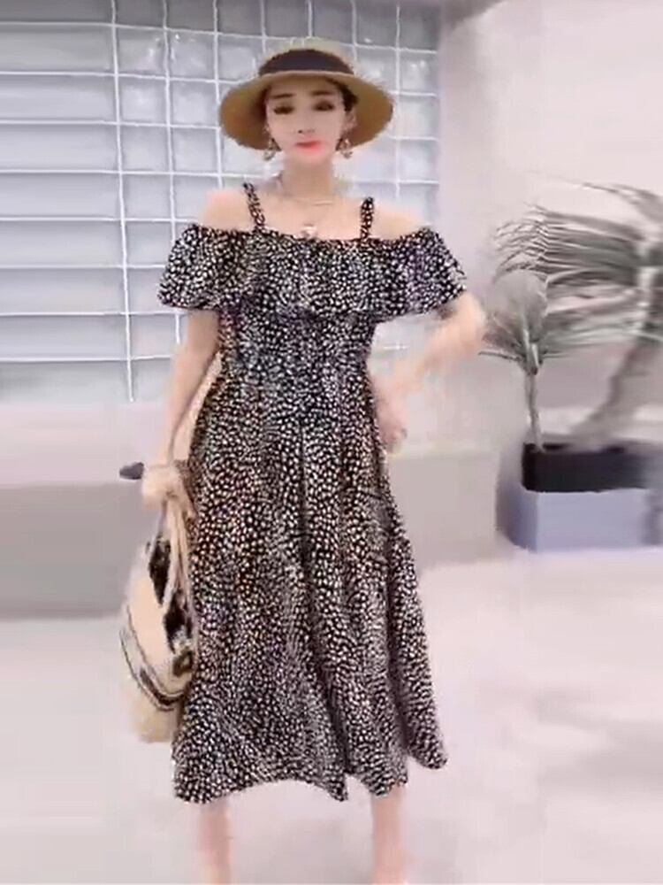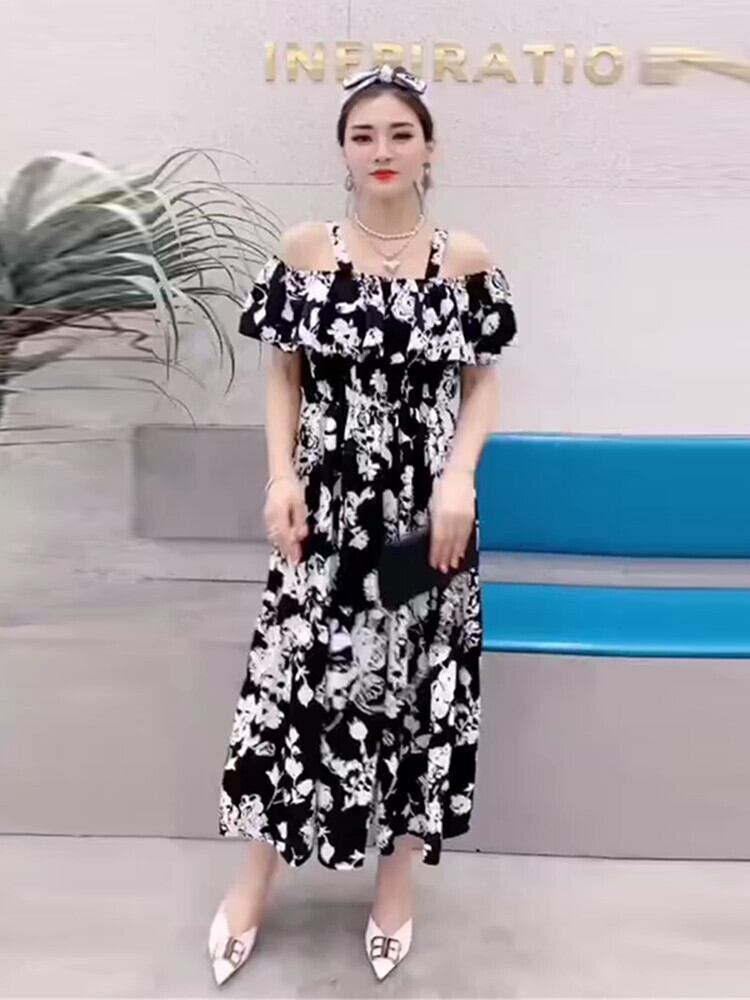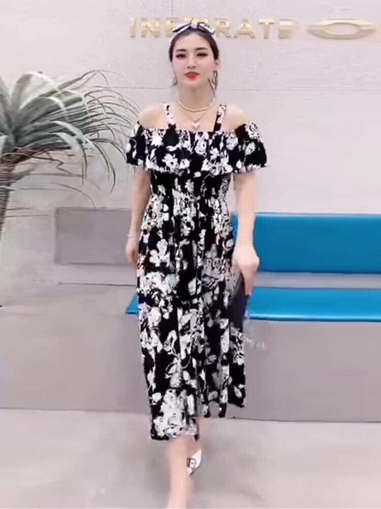 サマーストラップレスウェストドレス スタンダードフローラルスカート レトロ 大きめサイズ 夏物 花柄 ミックスインファッション41114273855