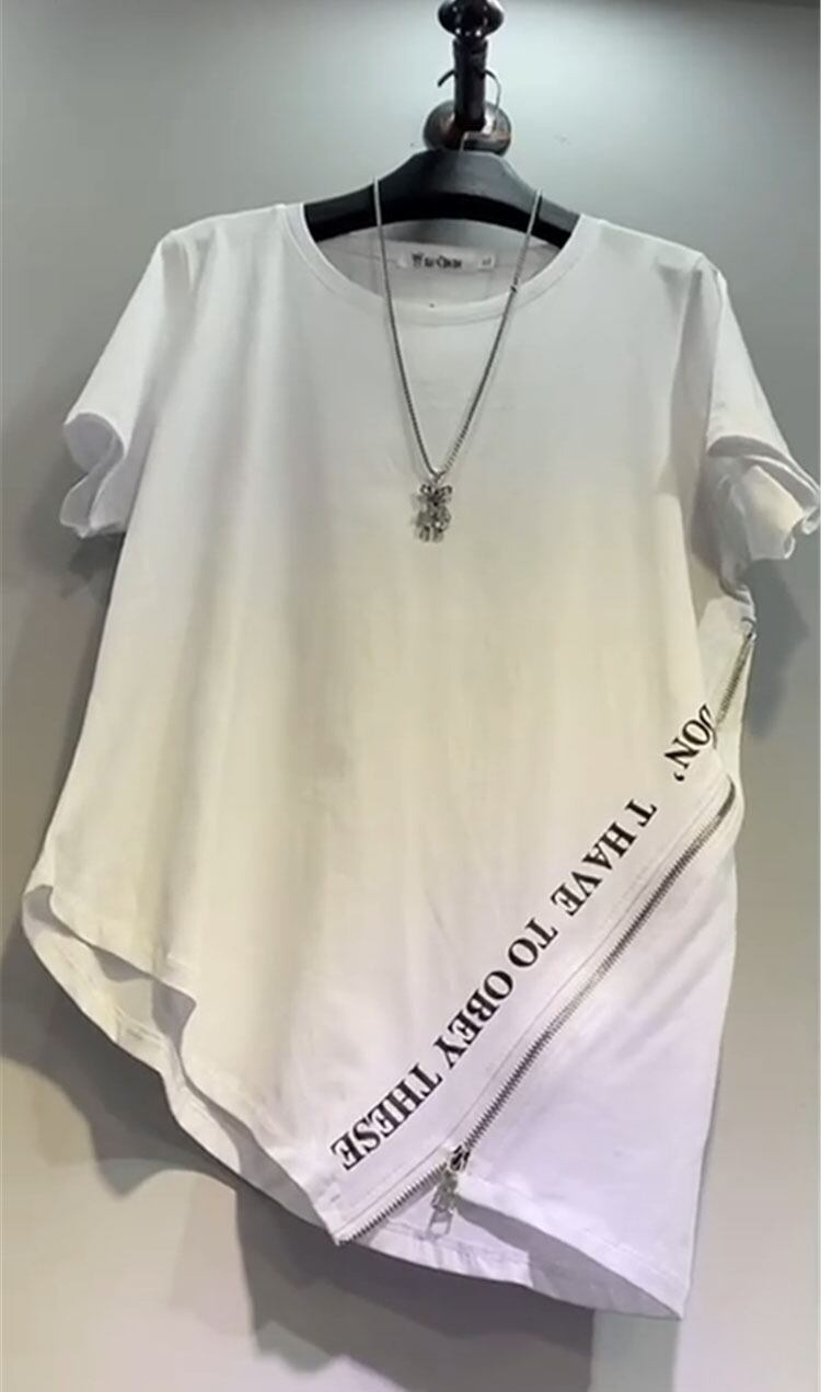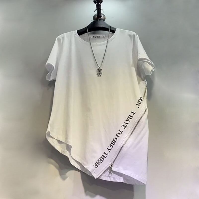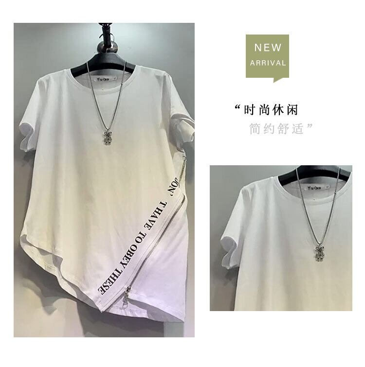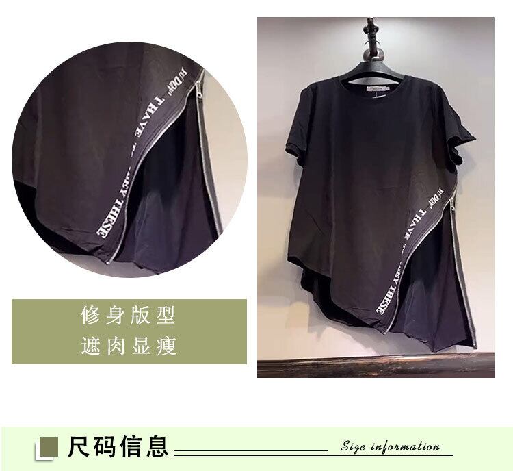 ラウンドネックジッパーTシャツ シャツ サマー 大きめサイズ 夏物 Oネック ミックスインファッション37944190775