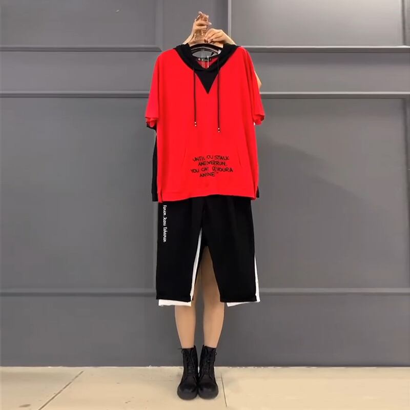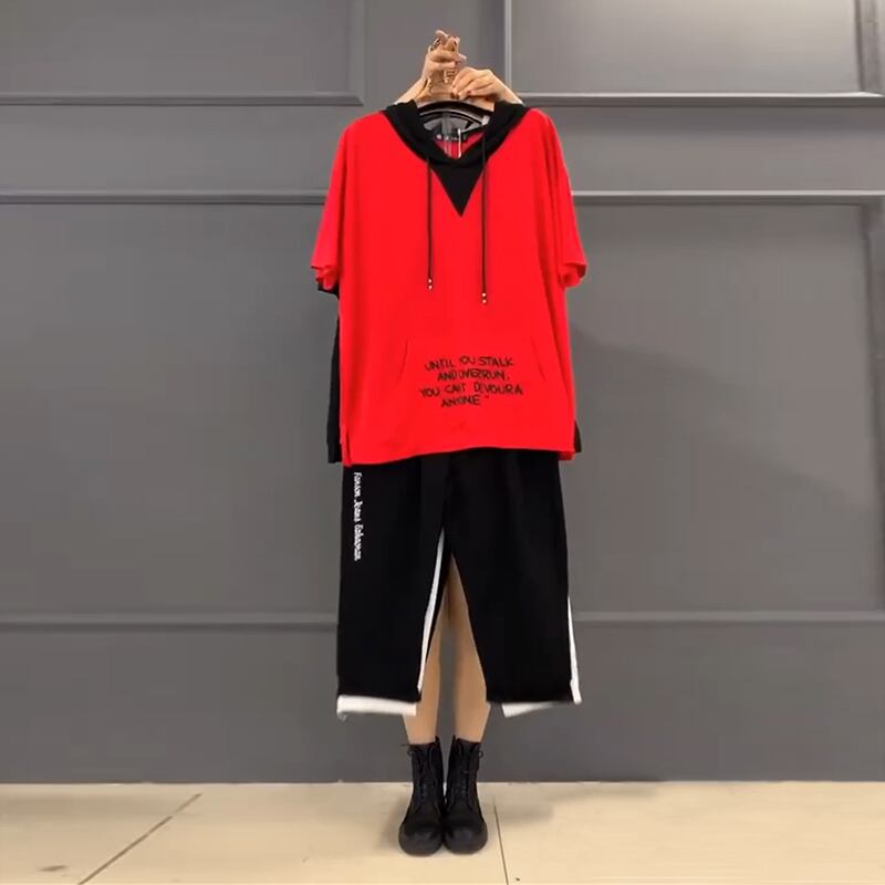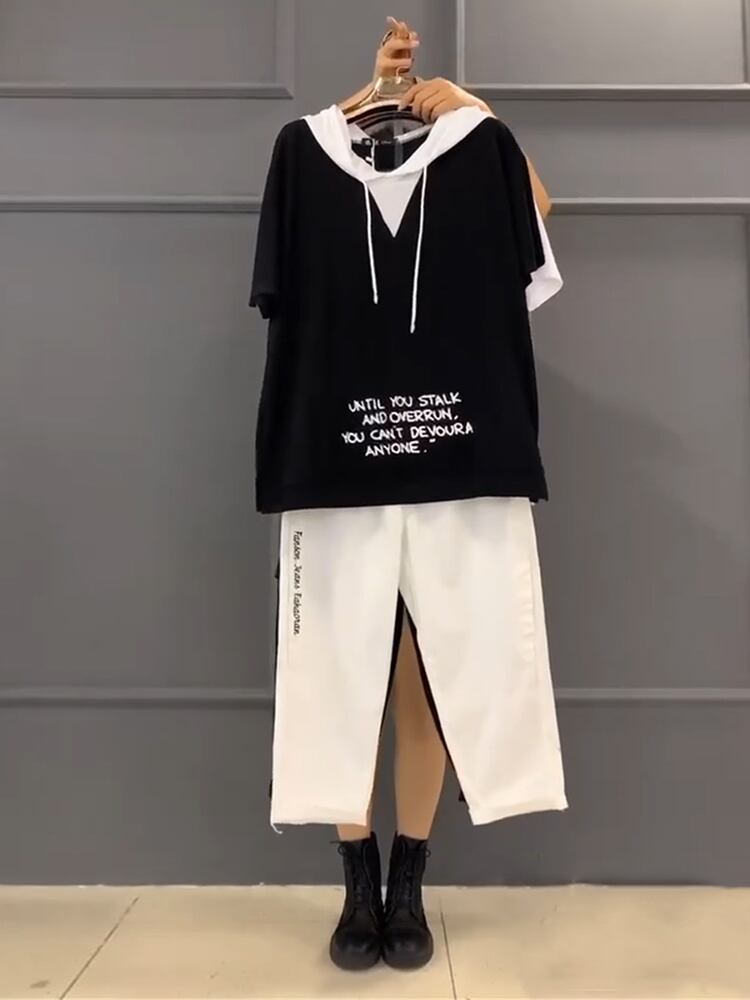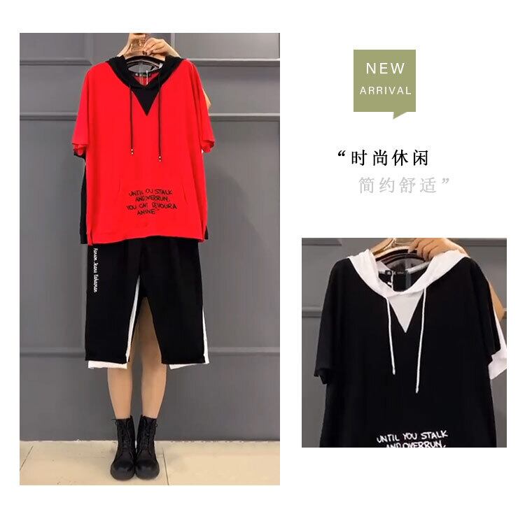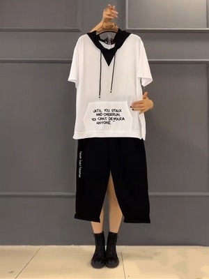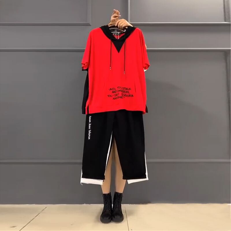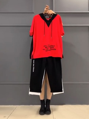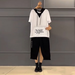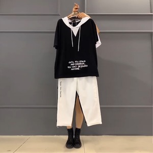 フードTシャツ シャツ ルーズスタイルサイドカジュアルパンツ 大きめサイズ ミックスインファッション15497007491
