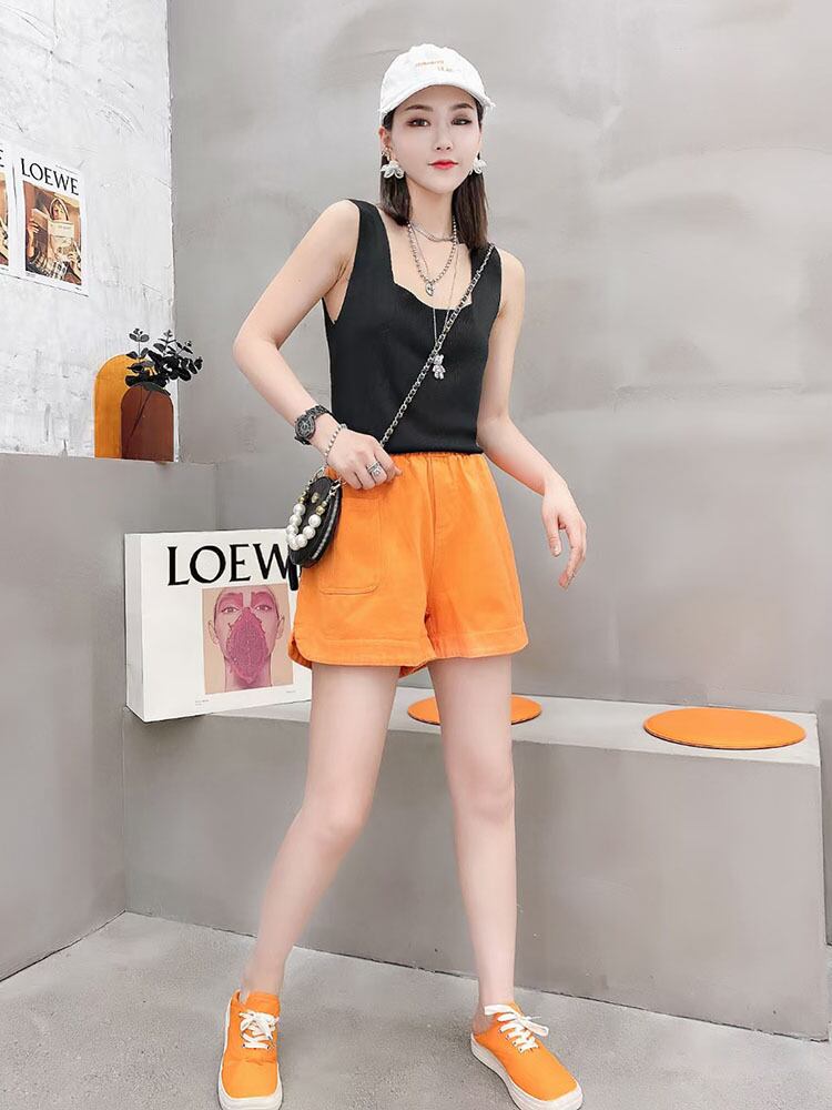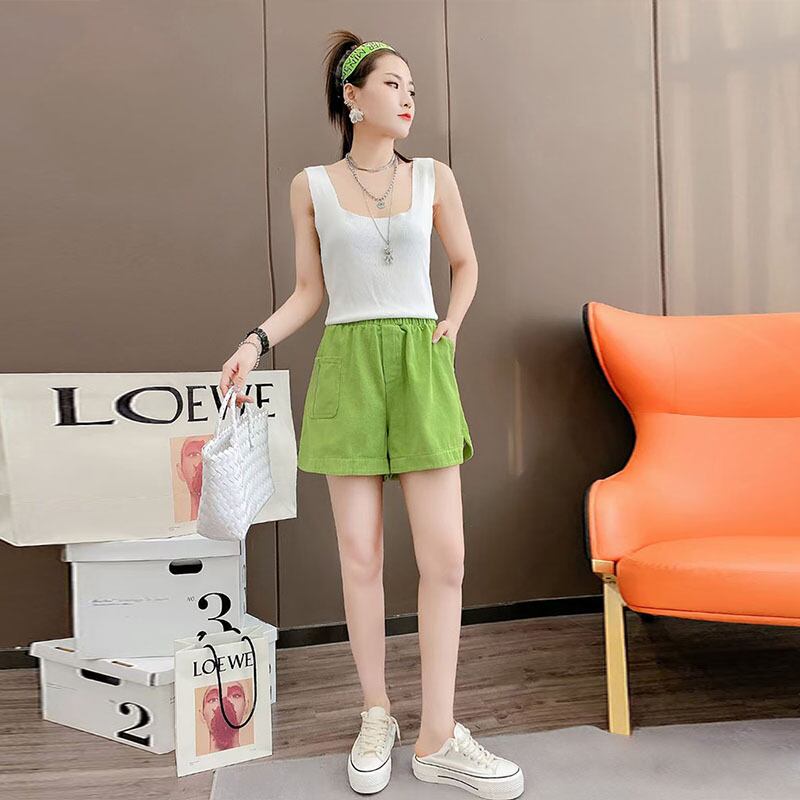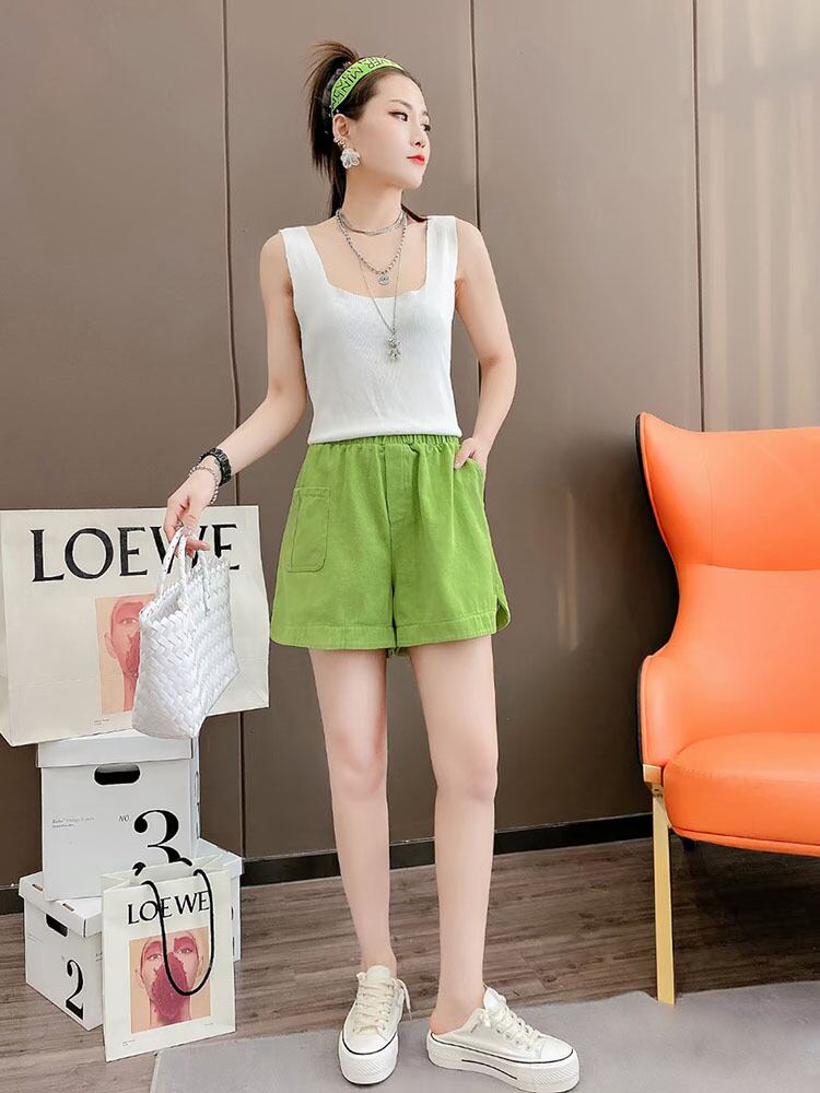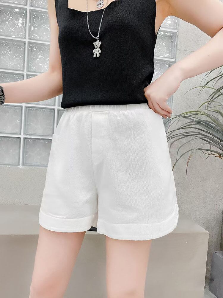 ストレッチウェストショーツ スプリングサマースリムスタイルルーズパンツ エラスティック 伸縮 大きめサイズ 春物 夏物 ブルマー ミックスインファッション35440985509