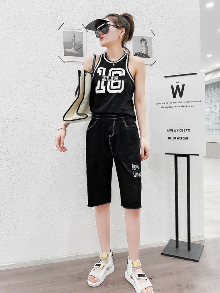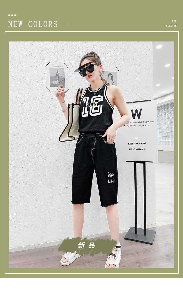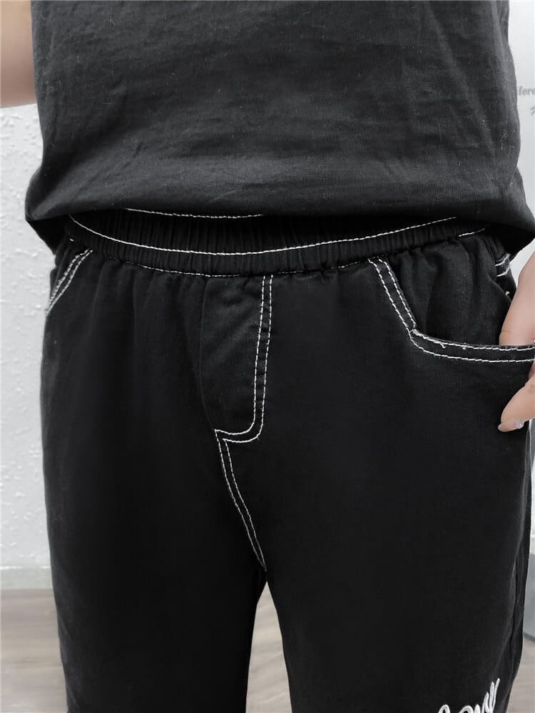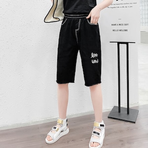 ラインストレッチウェスト刺繍パンツ サマーハイウェストショート エラスティック 伸縮 夏物 ミックスインファッション39663962346