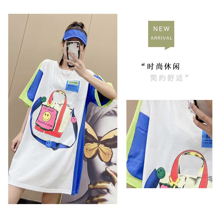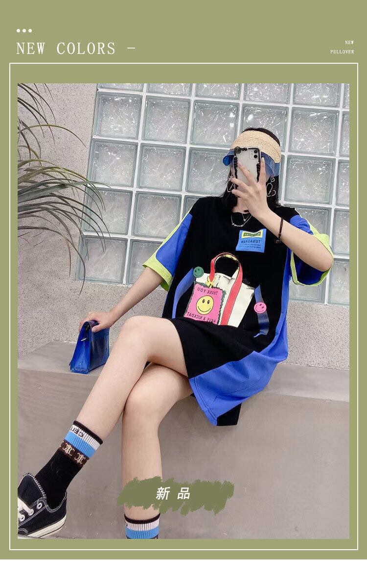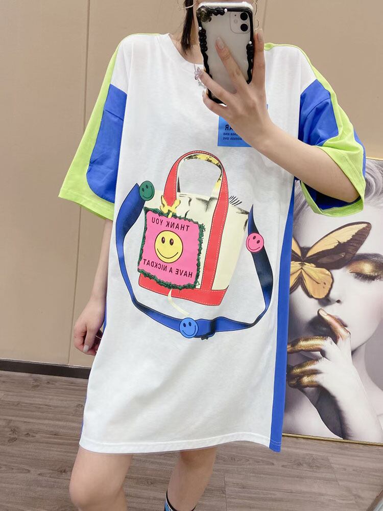 サマーカラープリントルーズTシャツ 大きめサイズ 夏物 ミックスインファッション75701970142