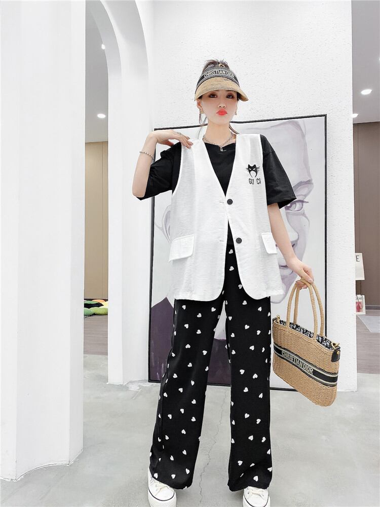 色:ブラックTホワイトベストツーピーススーツ,黒いズボン